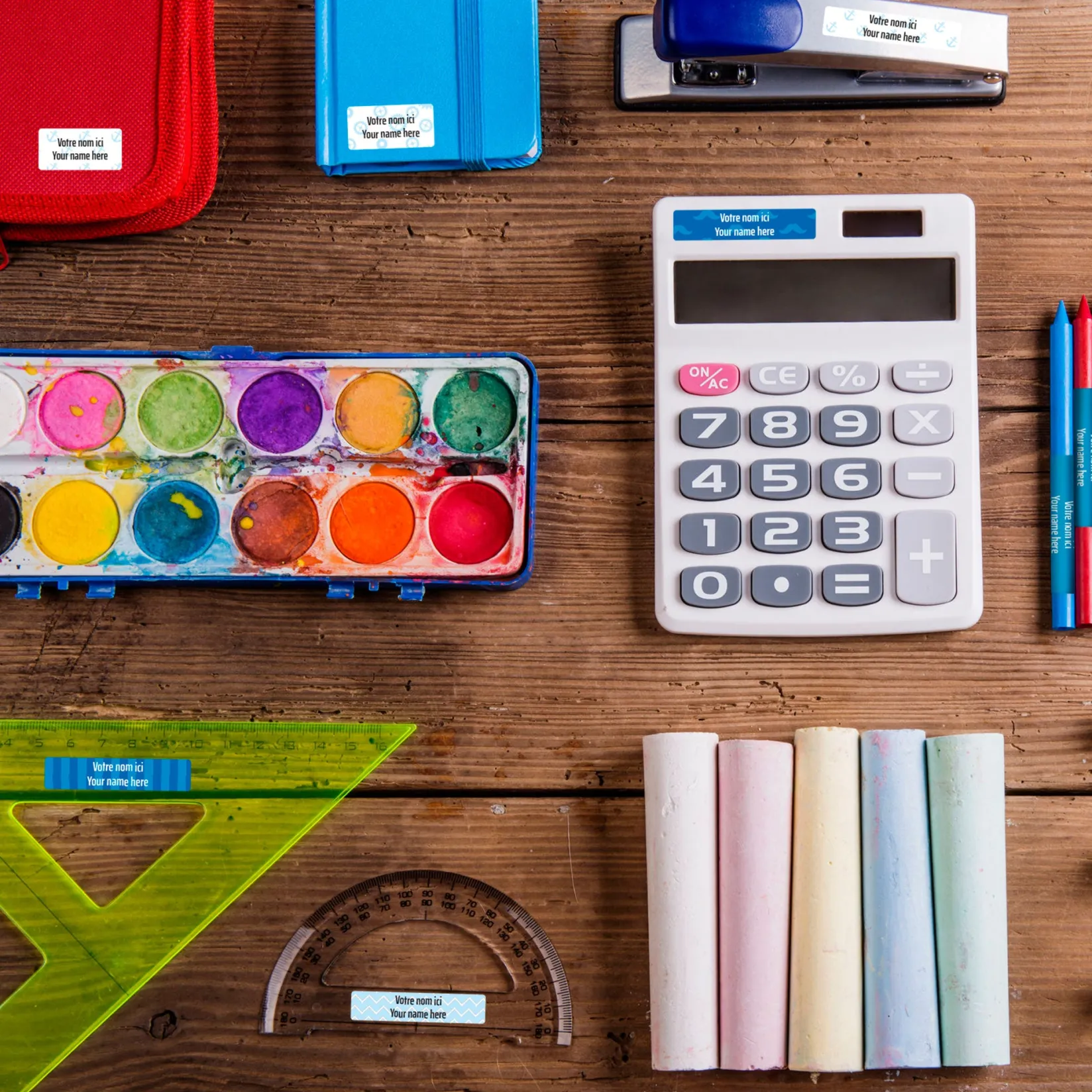 The set of personalized sticky labels Clément becomes your best ally for the quick identification of your family’s personal items. In a few seconds, young and old will be able to recognize their school items, lunchbox items, sports equipment, shoes, clothes, etc. Waterproof and durable, the labels are not afraid of freezing, water, heat, or steam. They are resistant to the microwave, refrigerator, freezer, dishwasher, washing machine, and dryer.