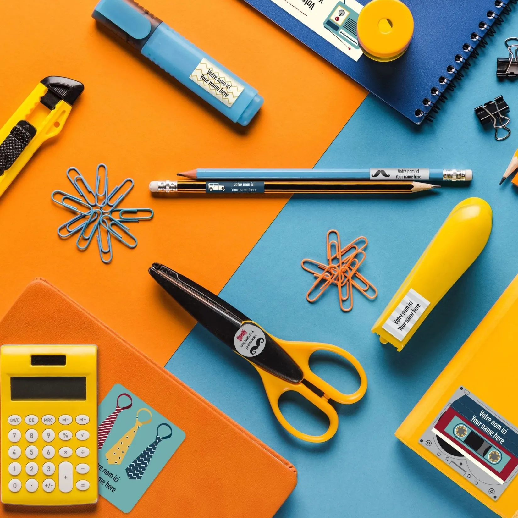 The set of personalized sticky labels Clément becomes your best ally for the quick identification of your family’s personal items. In a few seconds, young and old will be able to recognize their school items, lunchbox items, sports equipment, shoes, clothes, etc. Waterproof and durable, the labels are not afraid of freezing, water, heat, or steam. They are resistant to the microwave, refrigerator, freezer, dishwasher, washing machine, and dryer.