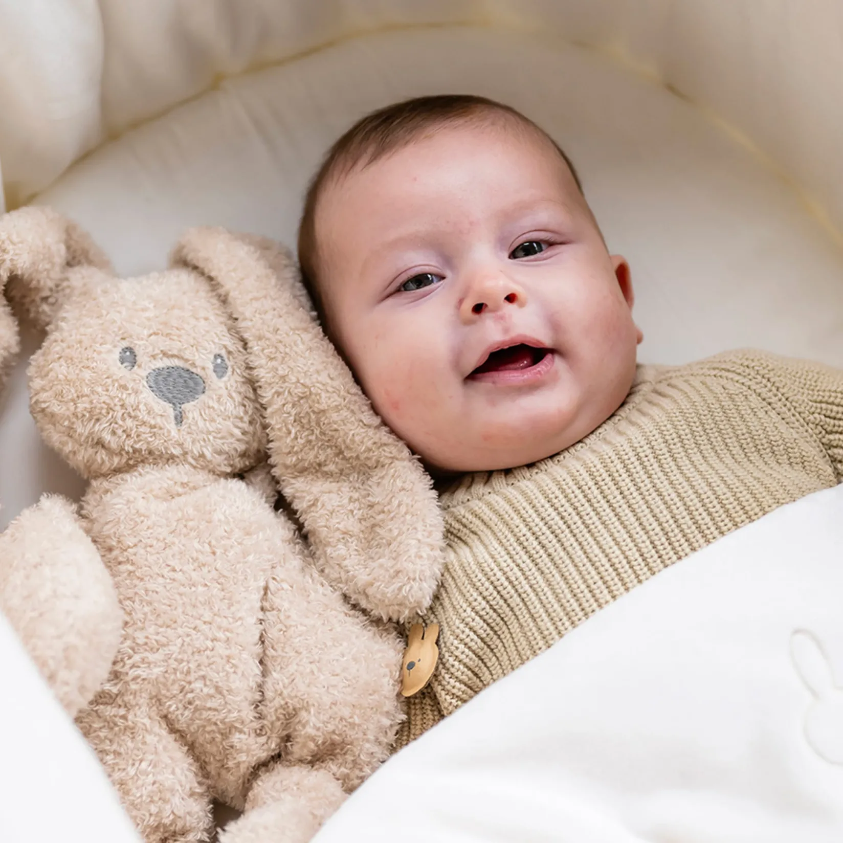 This beautiful plush toy with soft colors and a cute face will make your child’s heart beat faster. This soft toy can be grasped in many ways and thus promotes both gross and fine motor development. The extra soft material gives a feeling of security and protection during the first weeks and months. This cuddly toy is the perfect playmate for the craziest adventures and the best friend to cuddle in difficult times. Adorable, very soft rabbit, first friend and playmate, ideal for cuddling and comforting in difficult times.