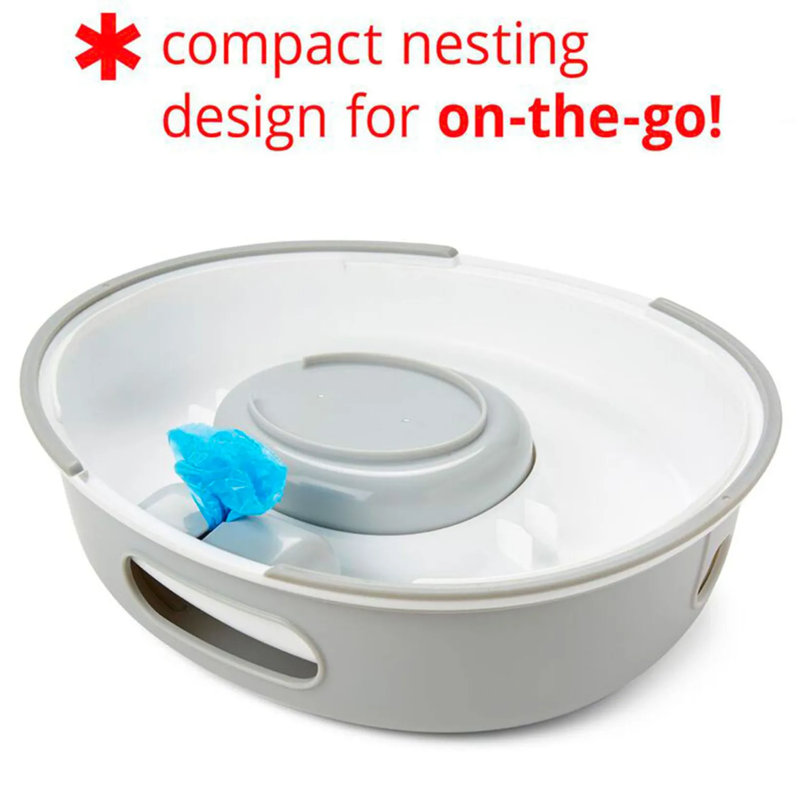 Always ready to go—anywhere and anytime—our 3-in-1 potty offers three smart solutions for bathroom breaks at home and on-the-go. Featuring a compact nesting design that’s great for travel, the sleek, easy-clean design works as an on-the-go potty with a handy disposable bag holder, a stand-alone potty with basin or a toilet trainer that fits most toilet seats for three options in one.