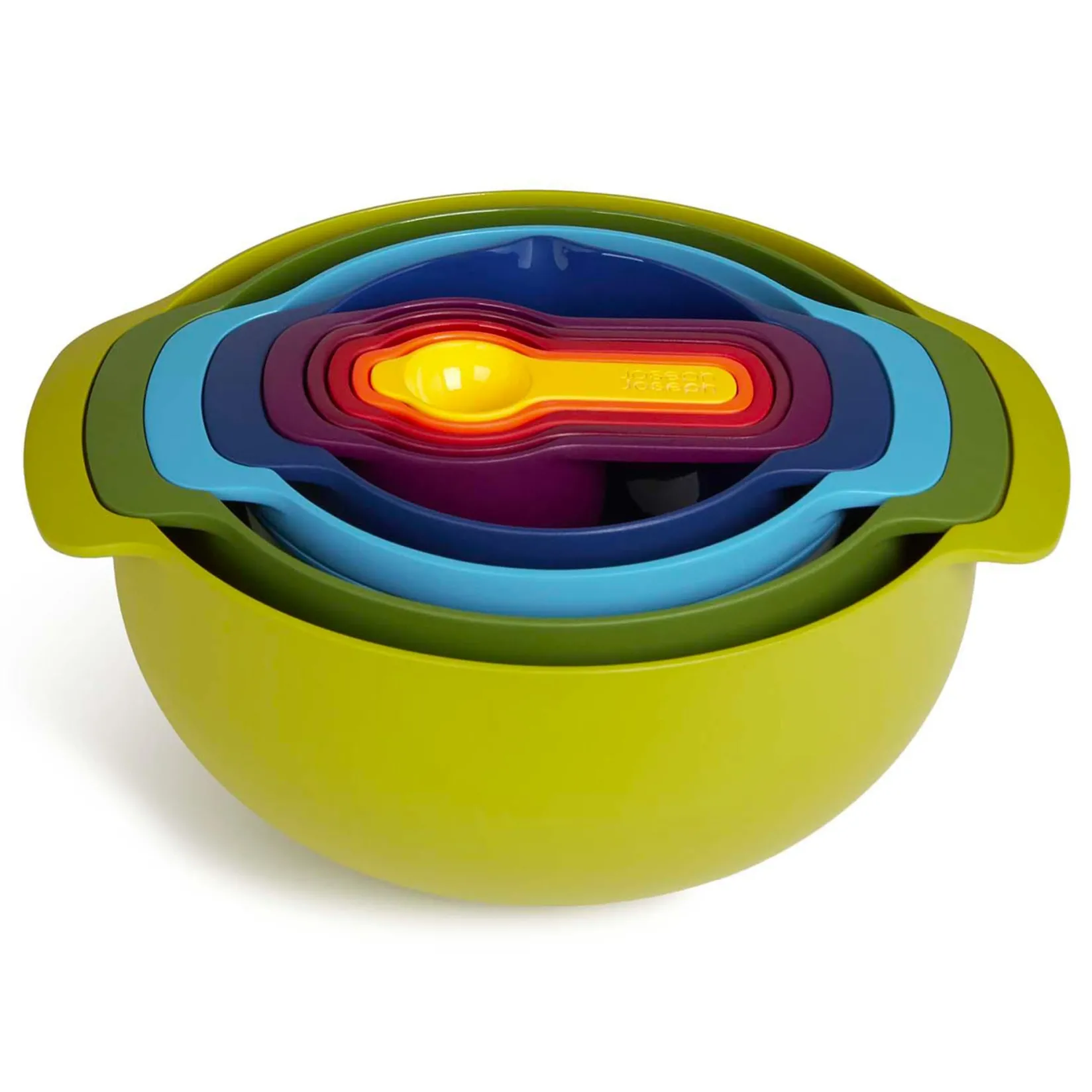 The joseph joseph nest 9 looks and works just like the real thing, featuring nine different kitchen tools for non-stop cooking and baking. With five interlocking measuring cups (you will find units labelled on the base of each cup), a medium mixing bowl, large mixing bowl, mesh sieve and colander to play with, it’s safe to say that kitchen pretend play just got a massive upgrade! little ones won’t know where to begin!