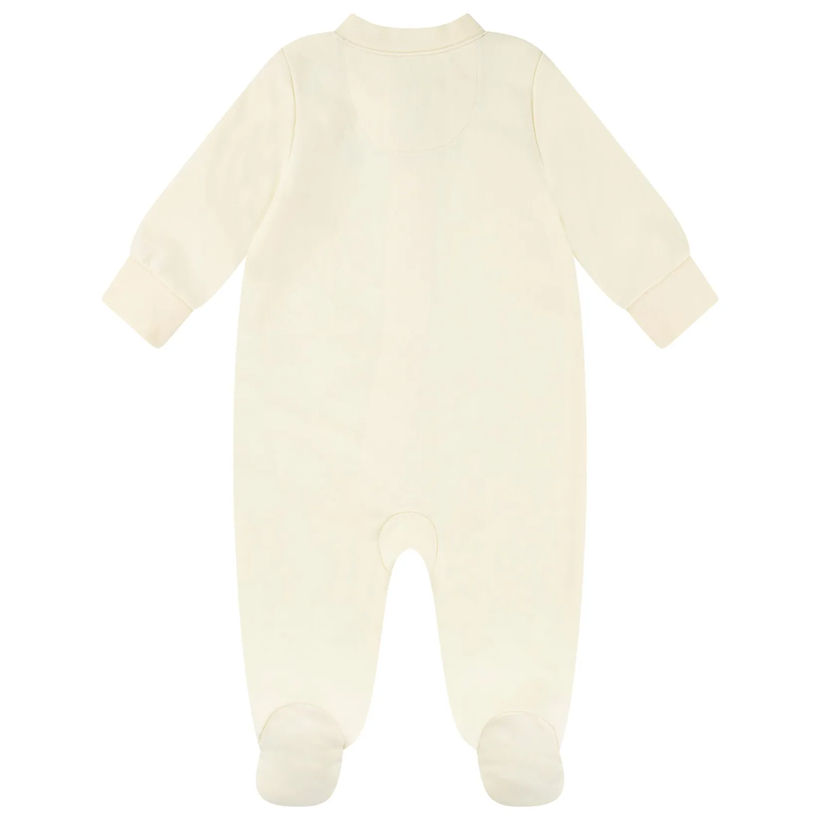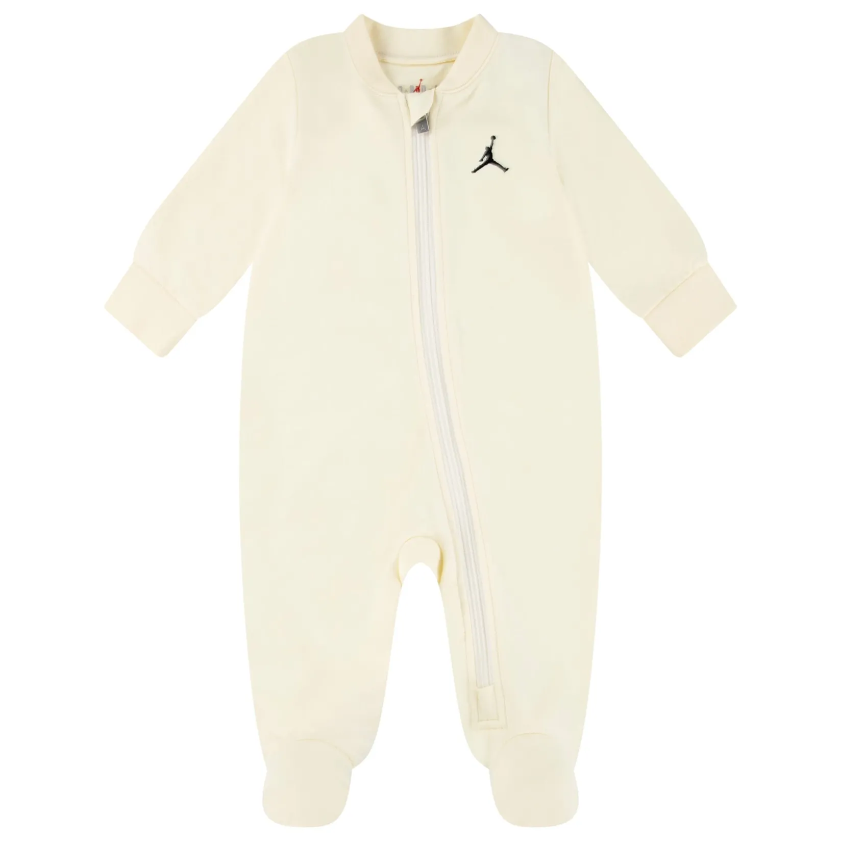 Features: Super soft baby French terry fabric, Long sleeves with foldover mittens, Covered feet, Full-zip closure, Zipper guard to protect the chin, Jumpman logo embroidery