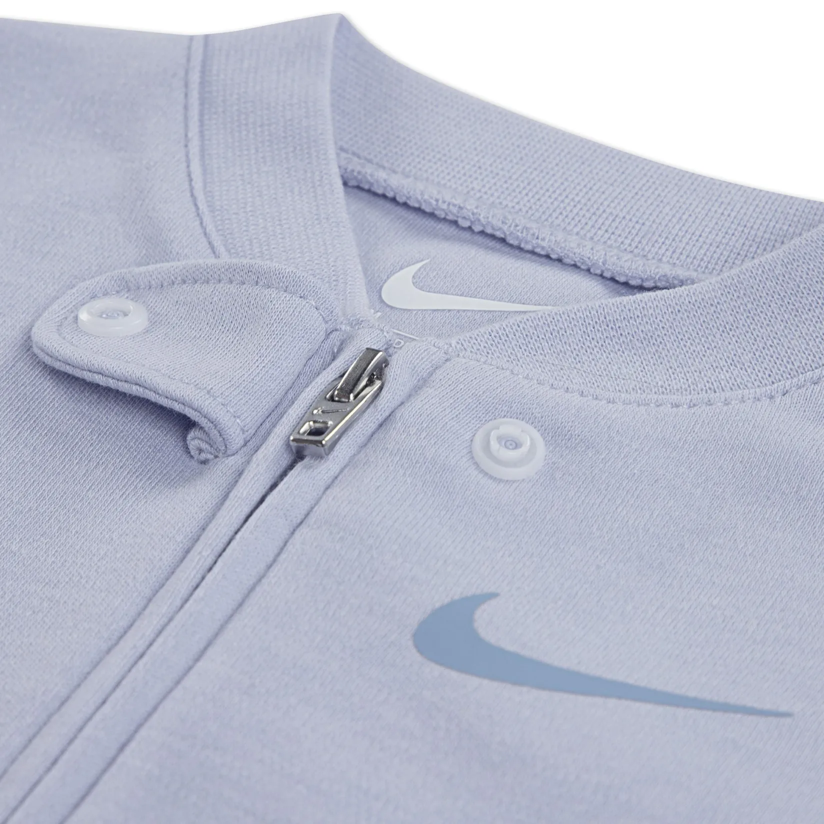 Easily dress future athletes in this Nike coverall, which is made of soft cotton/poly knit fabric that feels gentle and smooth on baby’s precious skin. The 2-way zip closure makes changing, dressing, or layering over a bodysuit easy, while the foldover mittens on the sleeves and the footed bottom help keep tiny fingers and toes toasty.