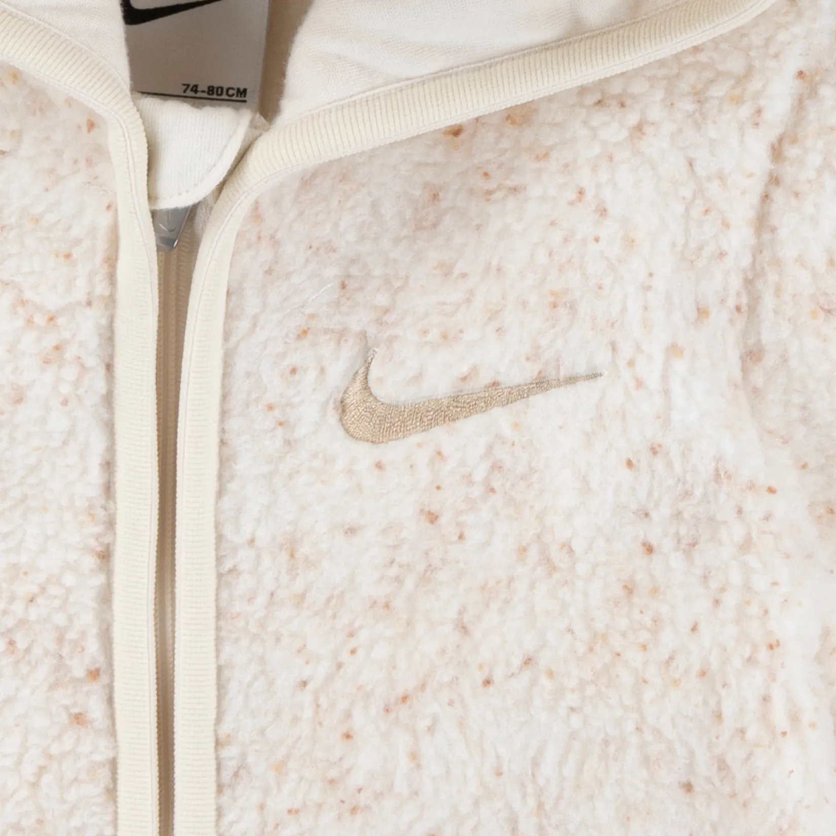 Outfit the smallest ones in cozy comfort with this Nike coverall, which is made of plush high-pile fleece that feels soft and gentle on baby’s skin. It has a full-zip closure that makes changing, dressing or, layering over a bodysuit easy, with foldover hand and foot warmers helping to keep tiny fingers and toes toasty. Top off this coverall with the adorable hood and you have a babyhood essential with character your little critter will be comfy and warm in.