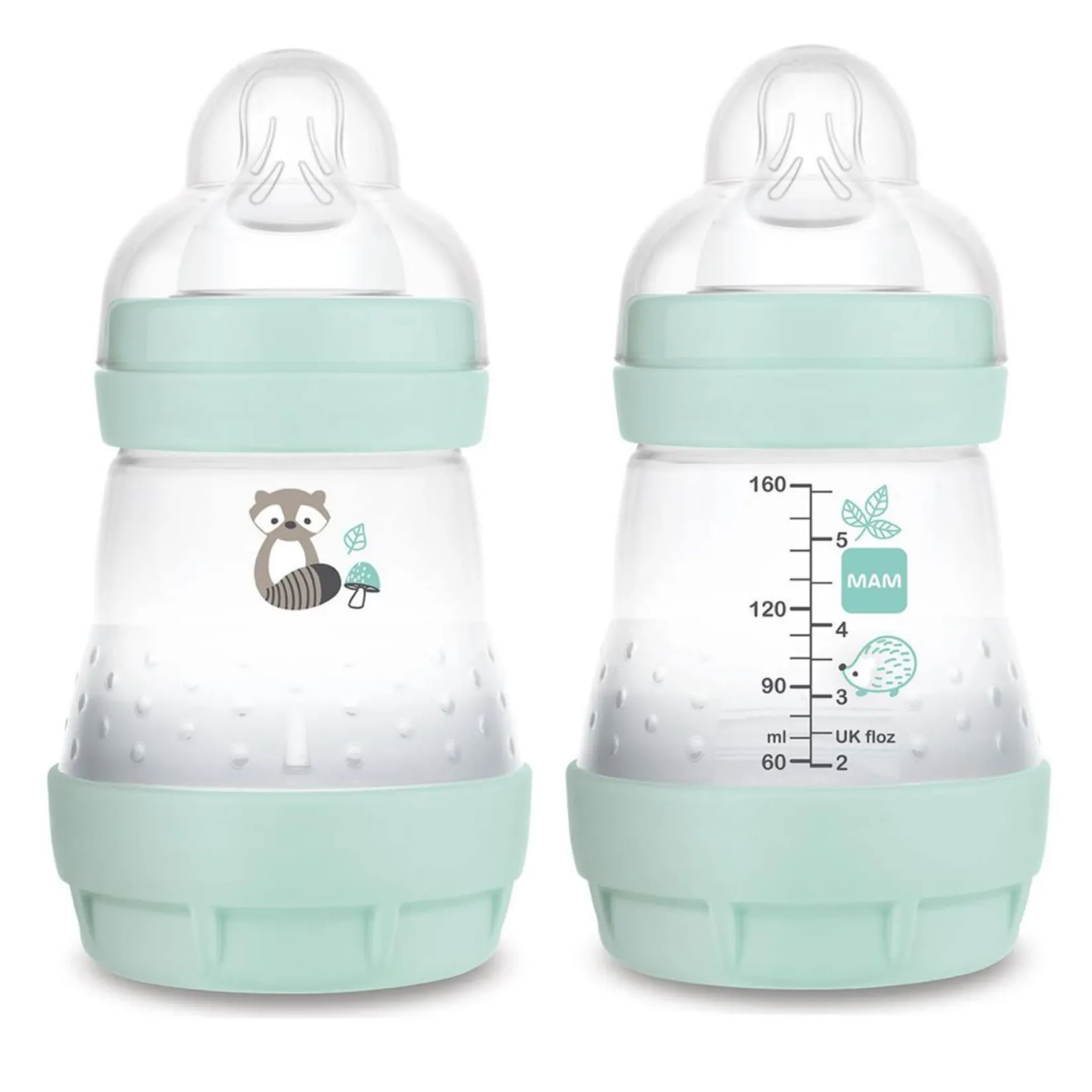 MAM Anti-Colic Bottles have a SkinSoft™ textured nipple that is accepted by 94% of babies* and a patented vented base that regulates pressure ensuring babies do not get air in their tummies while feeding. The wide openings make it easy to clean, fill and assemble. The bottle self-sterilizes in 3 minutes in the microwave in 3 easy steps for easy cleaning. Includes 1 slow-flow nipple. *Market research 2009-2017 tested with 1,508 babies.