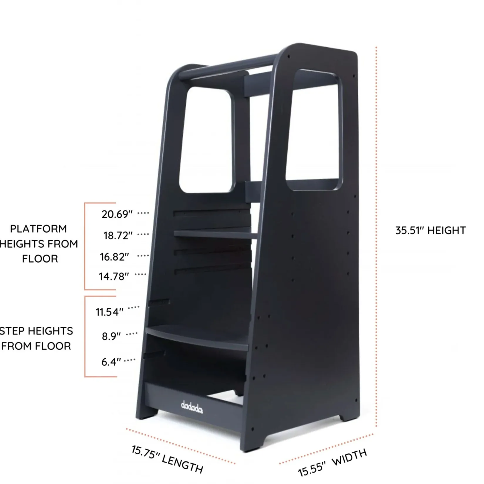 Crafted with the same quality construction we apply to our cribs and dressers, the Toddler Tower is built to help growing little ones safely and securely reach tabletops for craft time, countertops to explore new tastes, and sinks to practice handwashing and teeth-brushing with self-sufficient ease.