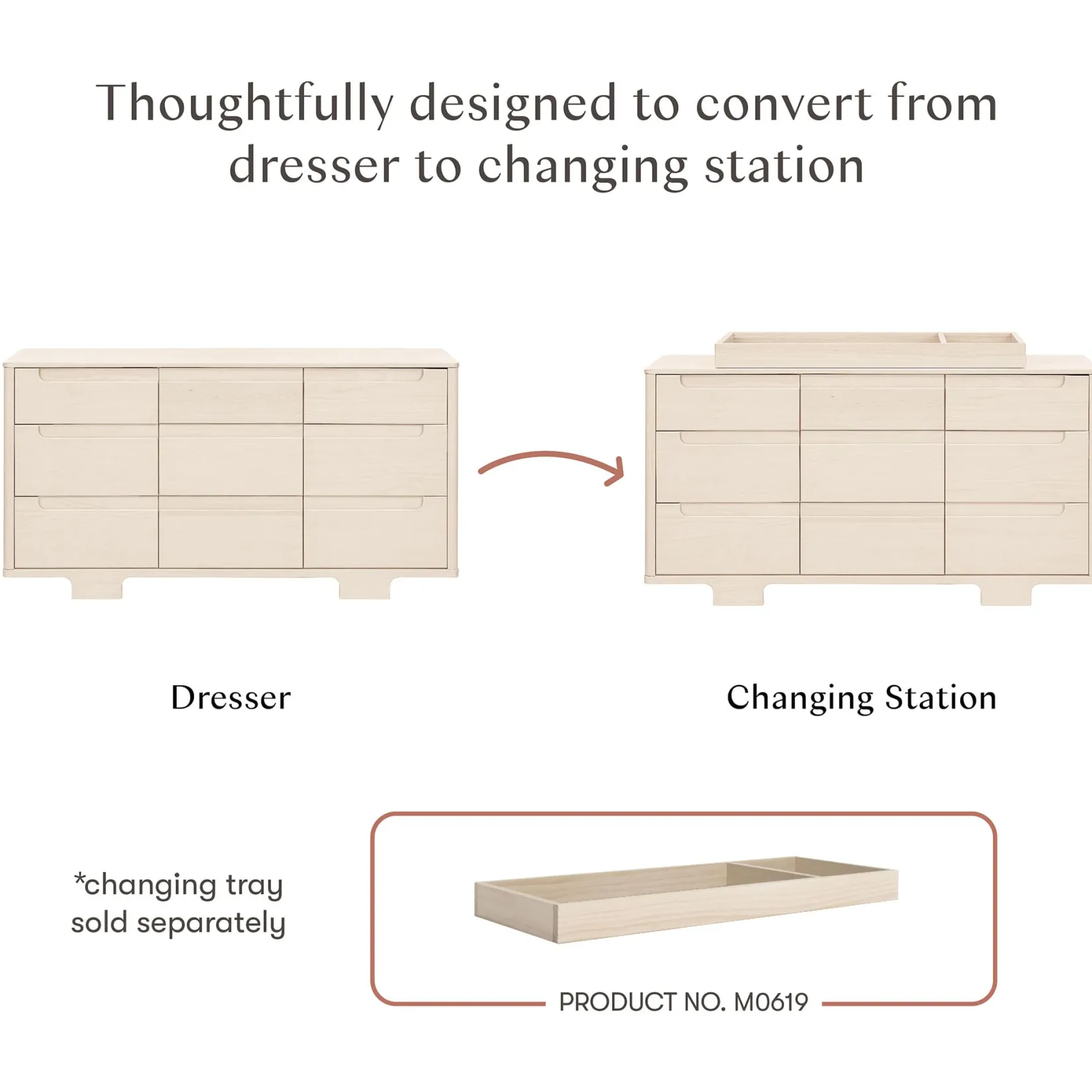 VERSATILE MODERN DESIGN: A sleek geometric form and rounded corners make Yuzu a stylish statement piece for the modern nursery. Designed with curved hand grooves, playful arched feet and the option to add a removable changing tray for the early years (#M0619 sold separately).