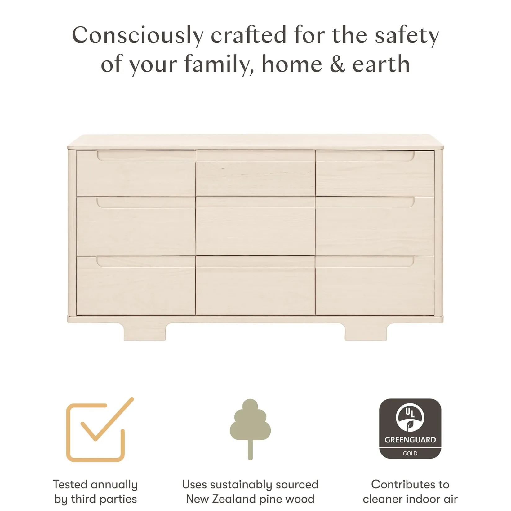 Designed to complement the Yuzu 8-in-1 All-Stages Crib, the Yuzu 9-Drawer Dresser marries form and function with playful arched feet, gently curved corners and plenty of storage with 9 spacious drawers. Whether you’re going for a classic, modern, or eclectic look, this versatile dresser is a perfect statement piece in the nursery. Best of all, the Yuzu 9-Drawer Dresser arrives fully assembled, ready to store all of babe’s clothing and necessities.