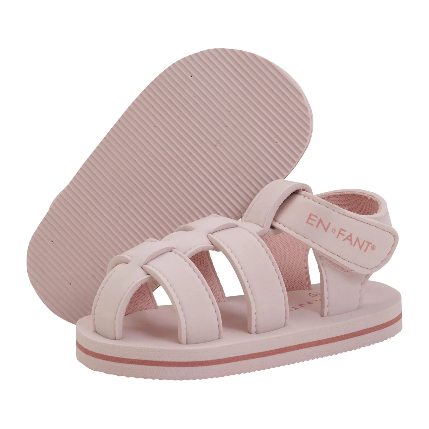Plain colored sandals from Enfant. The sandals have a nice, braided pattern. Behind the ankles there is a narrow strap and the sandals are tightened around the ankle. 1 cm in growth allowance is recommended.