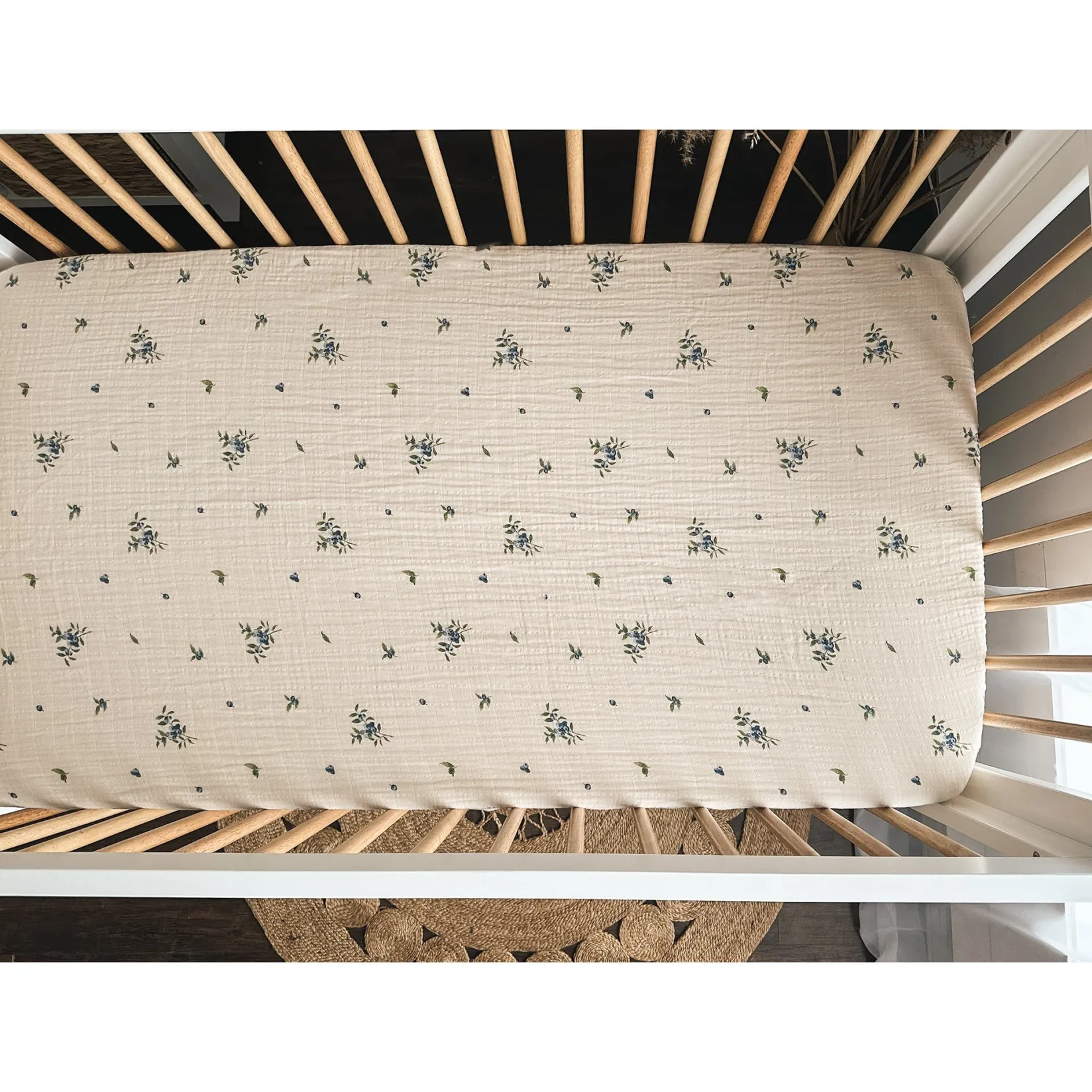 Made from premium organic cotton muslin, this fitted sheet is designed for crib mattresses and features a wide elastic band to fit different mattress thicknesses and stay securely in place.