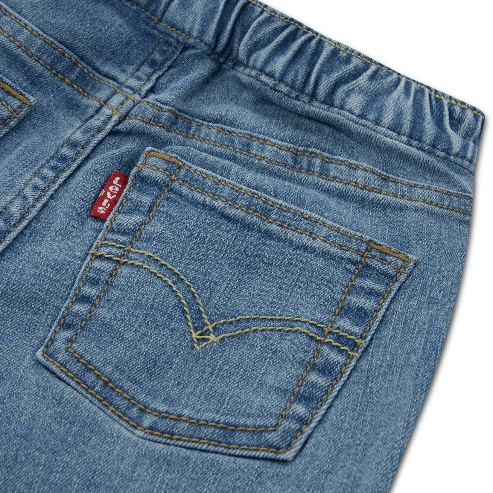 Shorts: stretchy denim, elastic back waistband, signature Levi’s® back pockets, hook and eye closure, zip fly;