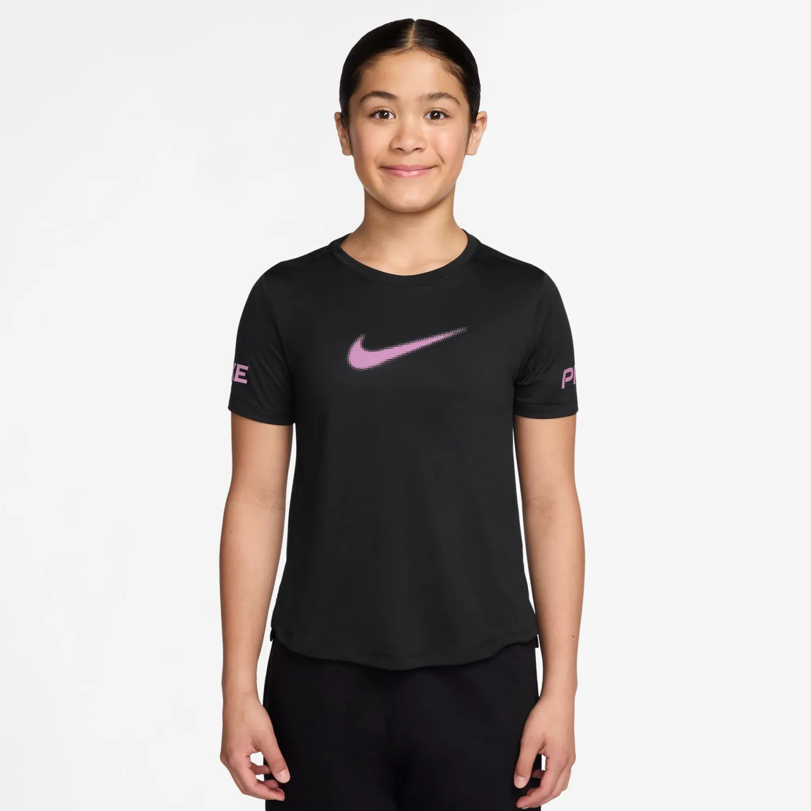 Nike Pro Big Kids’ (Girls’) Dri-FIT Short-Sleeve Training Top Whatever your sport, feel free to give it your all in the Nike Pro training top. Lightweight, stretchy fabric lets you move how you need to, while our Dri-FIT tech wicks sweat away and helps keep your head in the game. Nike Dri-FIT technology moves sweat away from your skin for quicker evaporation, helping you stay dry and comfortable.