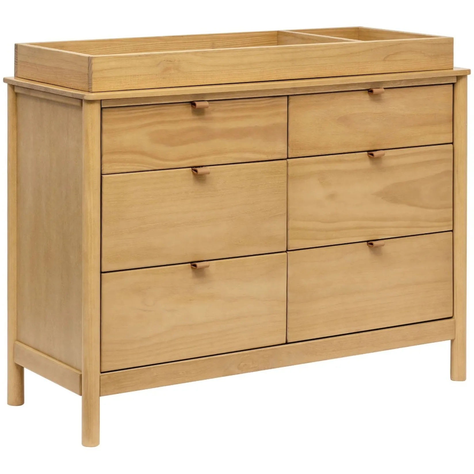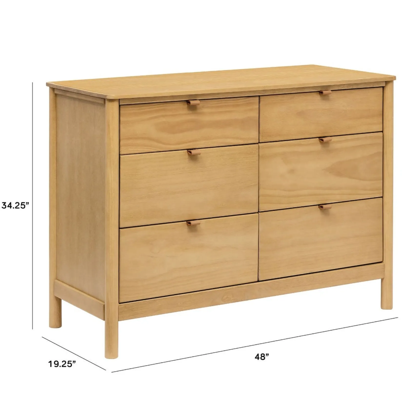 The simple yet sophisticated Bondi 6-Drawer Assembled Dresser complements both the Babyletto Bondi Cane 3-in-1 Crib and the Bondi Boucle 4-in-1 Crib with its warm wood finish and tonal vegan leather drawer pulls, rounded posts and minimalist silhouette. It’s designed for the nursery with spacious smooth-glide drawers, included anti-tip kit for safety, and best-of-all it arrives fully assembled, ready out of the box.