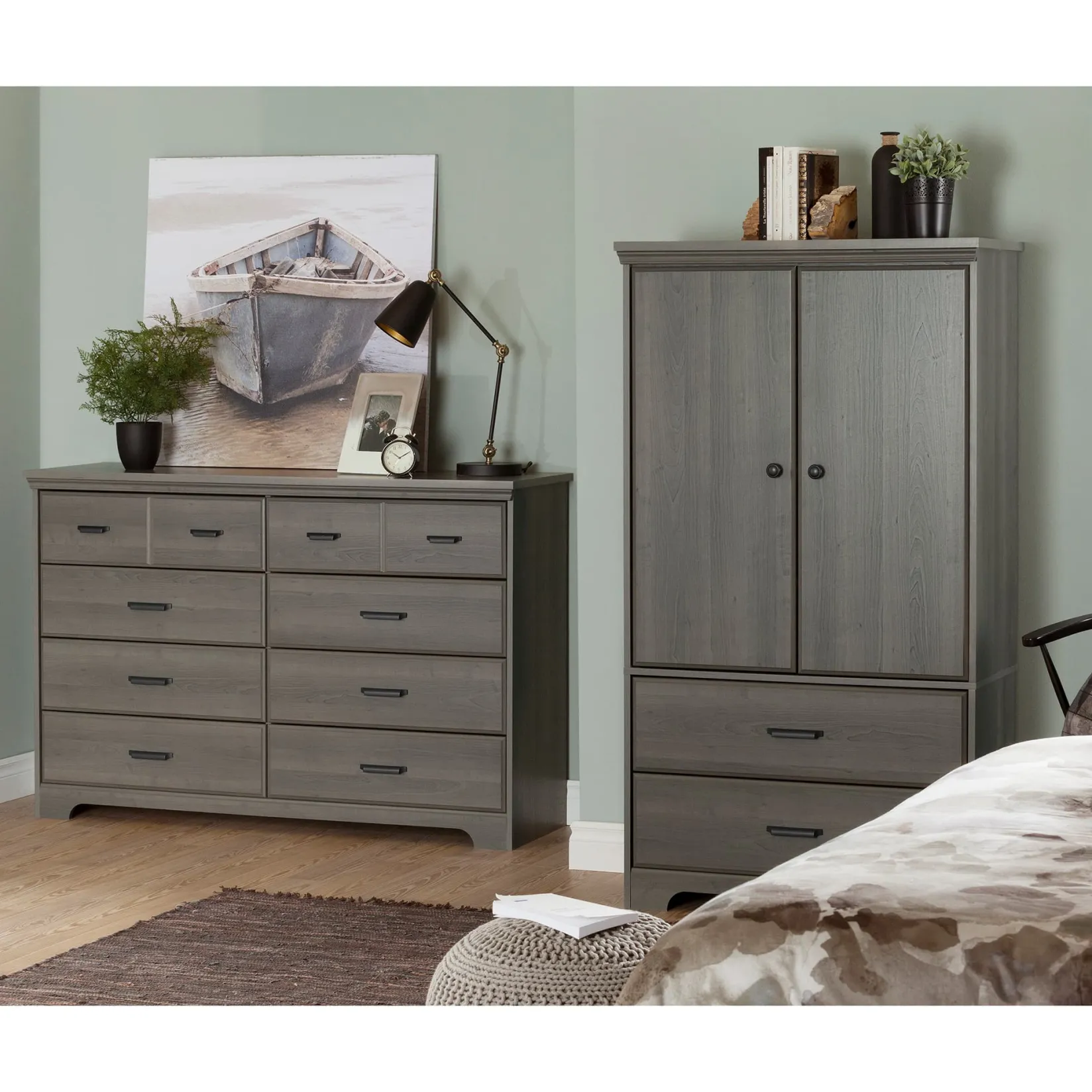 – LARGE STORAGE CAPACITY: You’ll find four compartments, separated by three adjustable shelves, behind the two doors of this armoire. Add the two roomy drawers, and this piece can hold a lot!