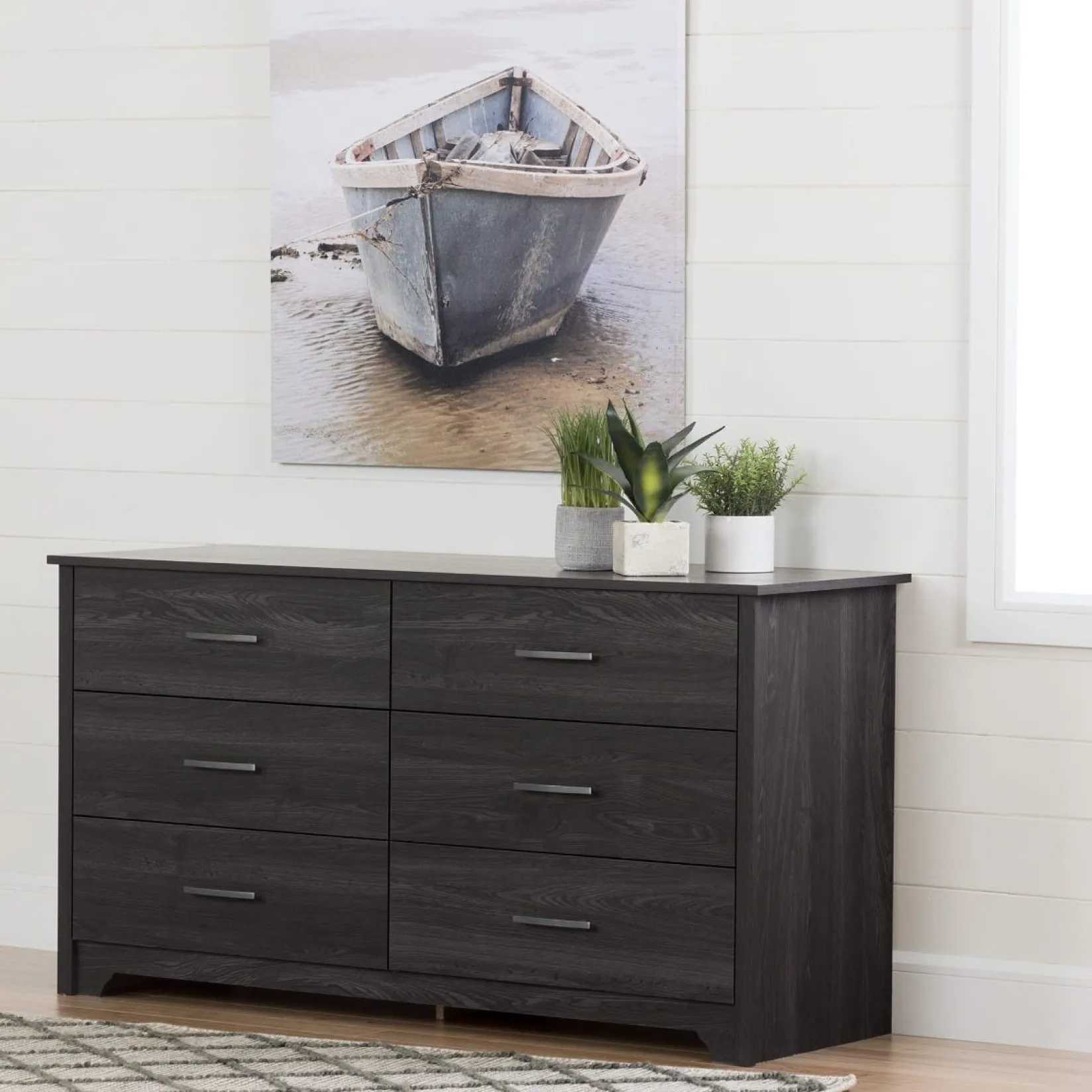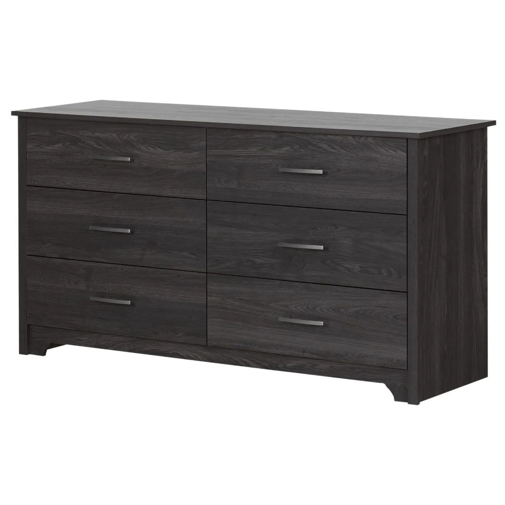 -TRENDY BEDROOM FURNITURE: The simple, elegant design of this Contemporary-style double dresser will highlight your decor. The straight lines, moldings on the outer edges of the drawers, clean cutout at the bottom, and slim metal handles give it a refined finish.