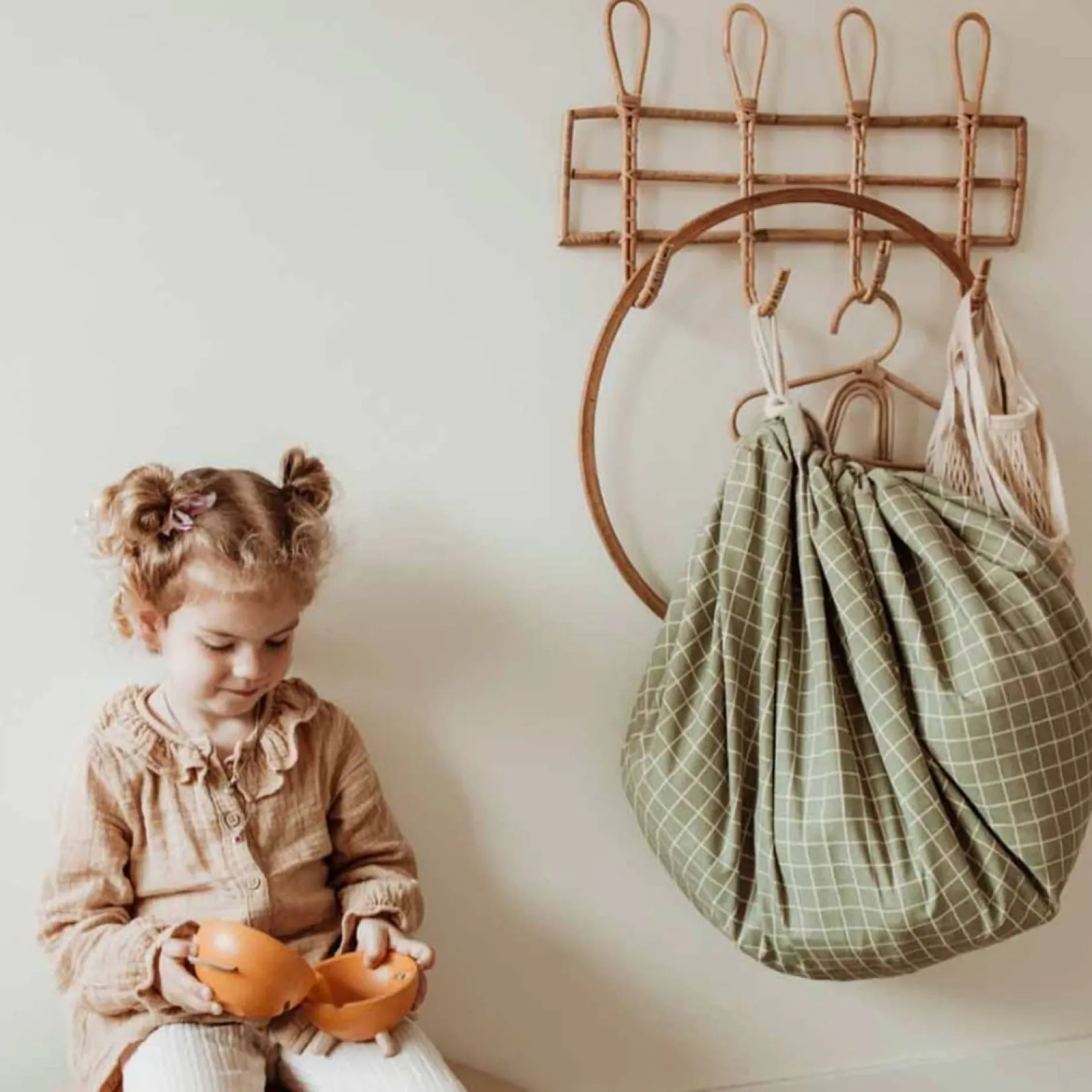The new mat will add a beautiful touch to any space. This is great, because our Play&Go bag is made to be carried from room to room. Toy storage that looks good, anywhere.