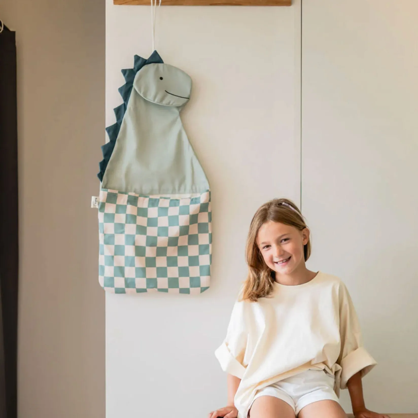 The toto “rabbit” by play&go® is a fun, dinosaur-shaped wall organizer that turns tidying up into an adventure.