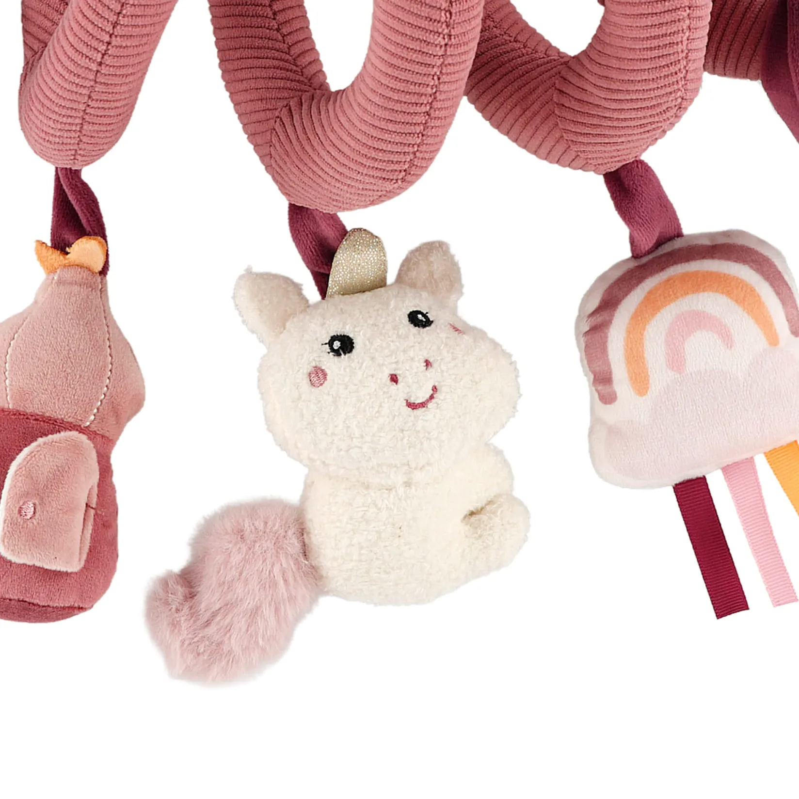Spiral toy to wrap around the stroller, car seat or playpen