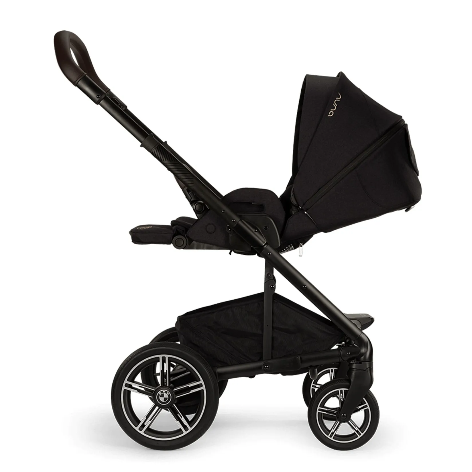 Embroidered BMW logo on calf support and infant insert.