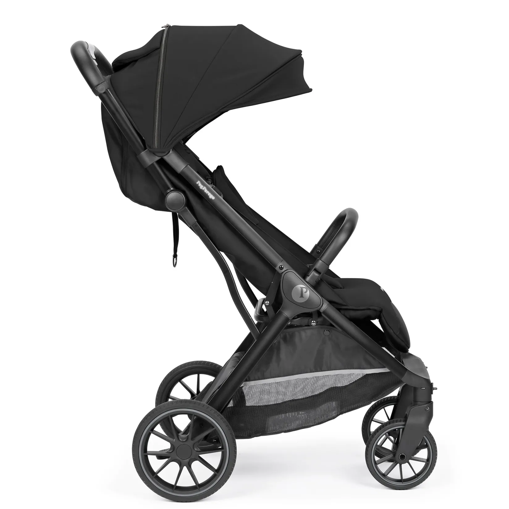 The Peg Perego X-Country Off-Road Compact Stroller keeps up on city sidewalks and off-the-beaten-path trails. Large rubber tires with tread, suspension, and ball bearings deliver a smooth, confident ride across all surfaces.