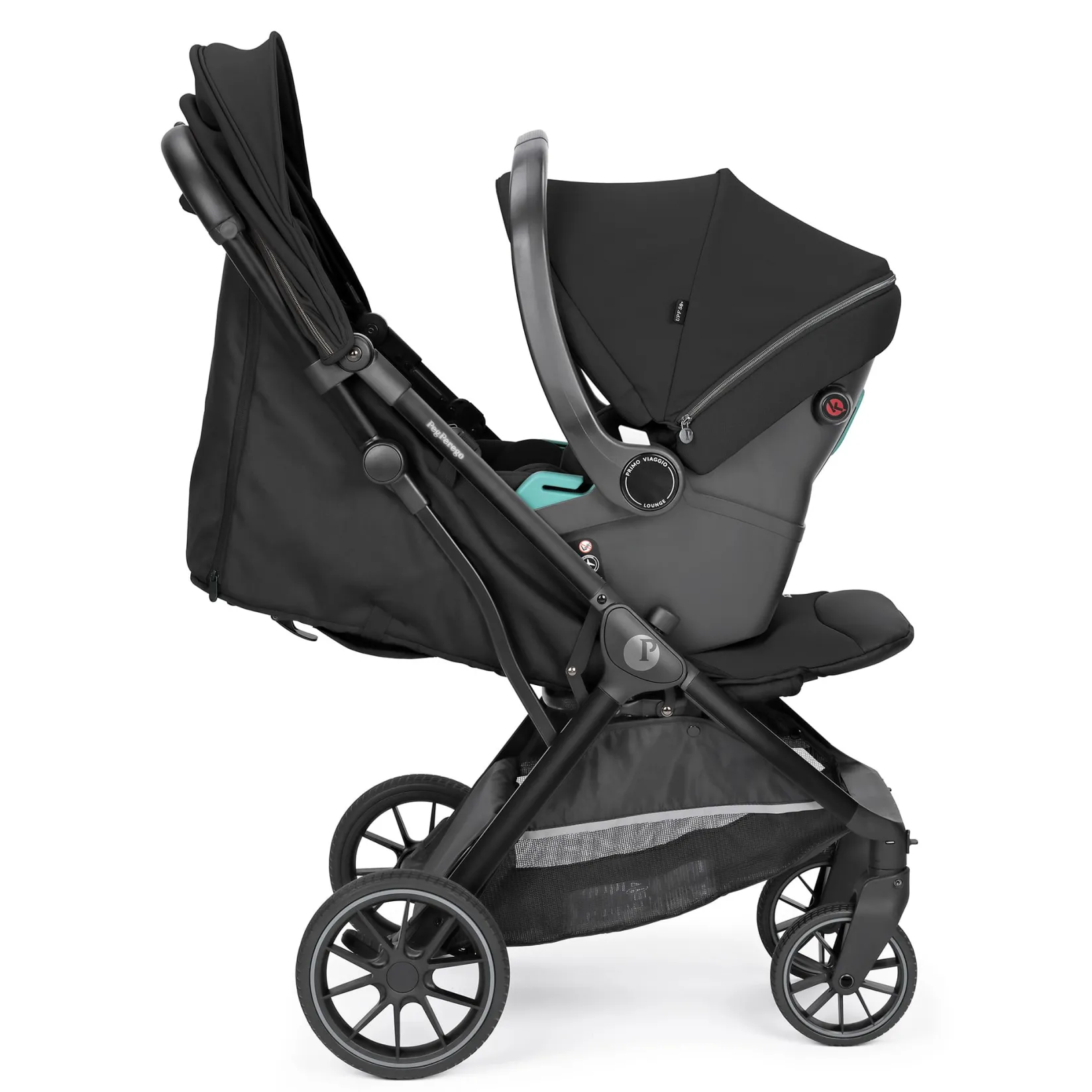 – UPF 50+ extendable canopy with ventilation: wide hood with mesh panel and breathable roll-away curtain