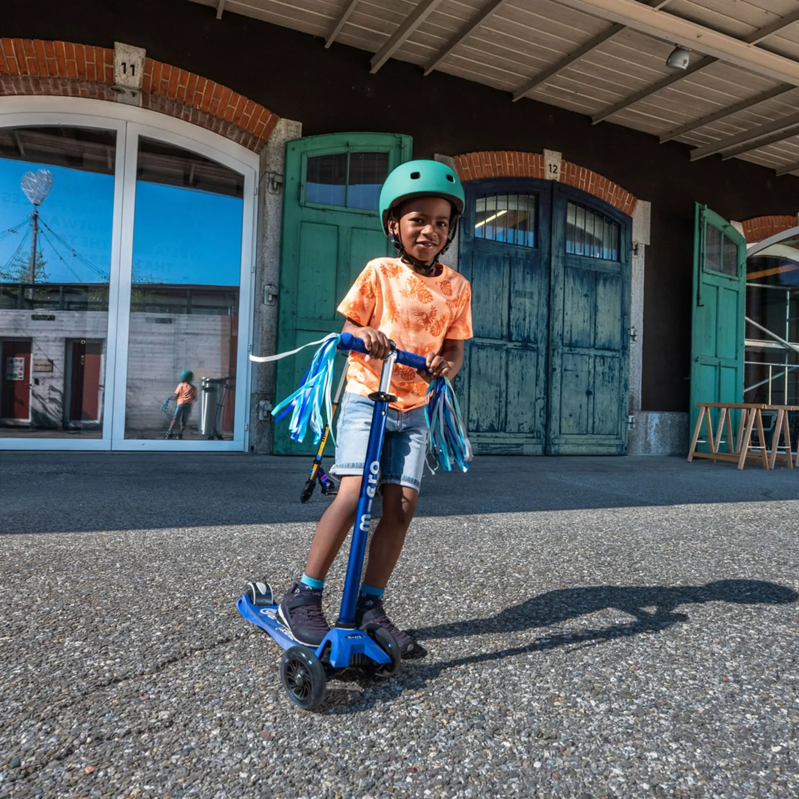 Dazzling motion-powered LED wheel lights make this Deluxe Maxi for ages 5 – 12 a real eye-catcher while enhancing visibility! Comes apart with the click of a button!