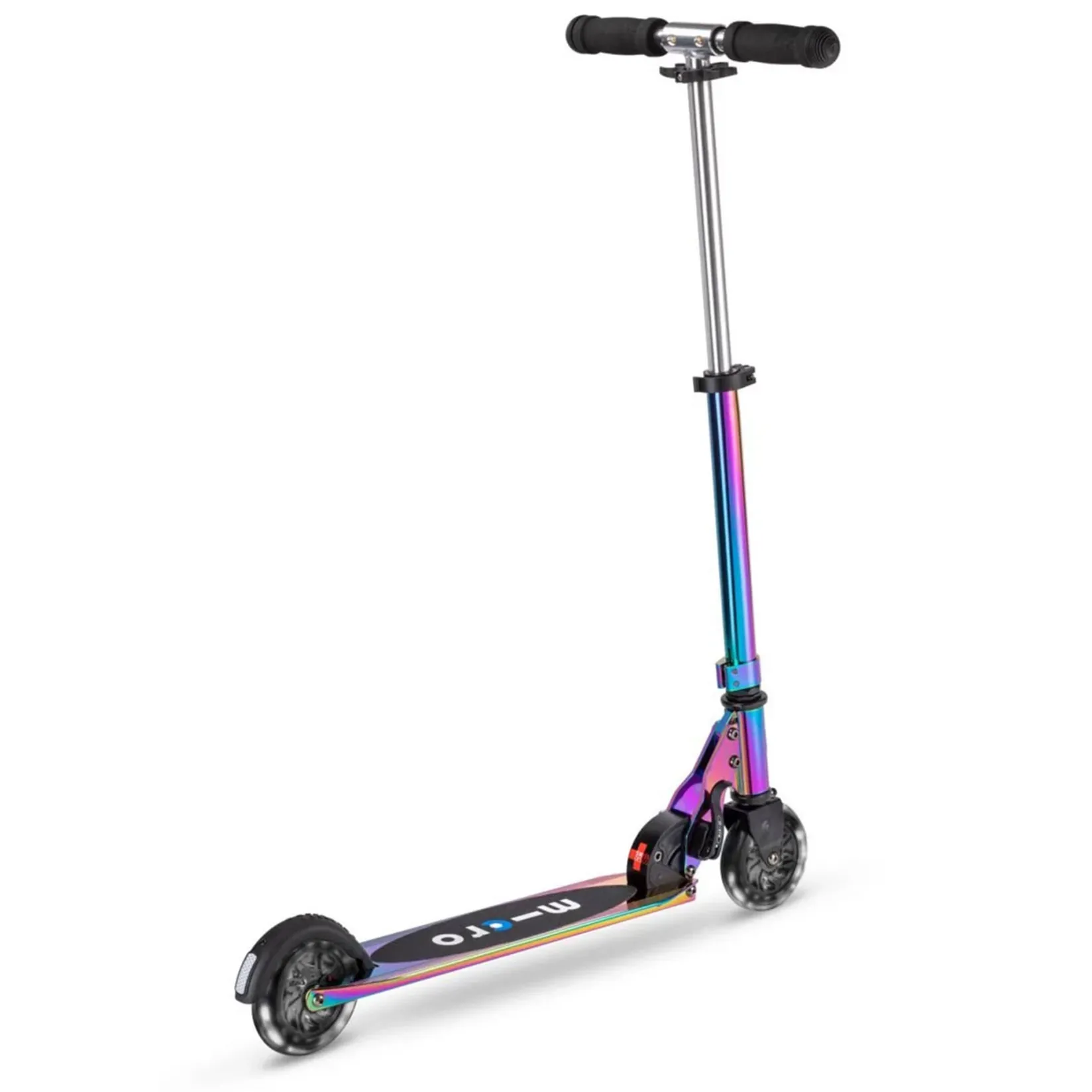 Go anywhere on the Micro Sprite LED! This scooter for kids and teens 6-18 features motion-activated light-up LED wheels on the front and back. Our lightest 2-wheeled Micro scooter for ages 6 years to teen, the Sprite weighs just 2.85 kg and folds for easy portability. It’s our highest rated 2-wheel Micro scooter for a reason.