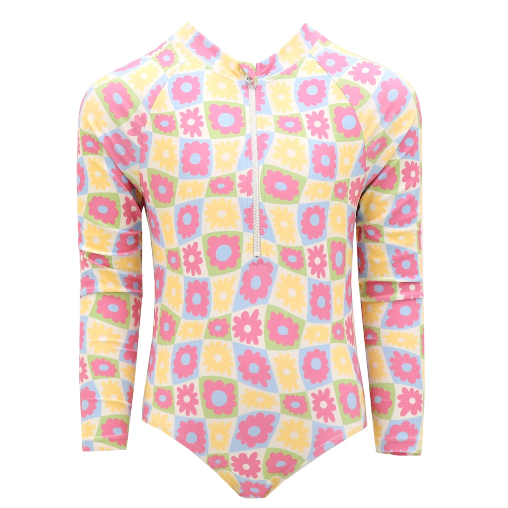 Swimsuits>Look Groovy Flowers Long Sleeves Swimsuit 2-14y Ivory