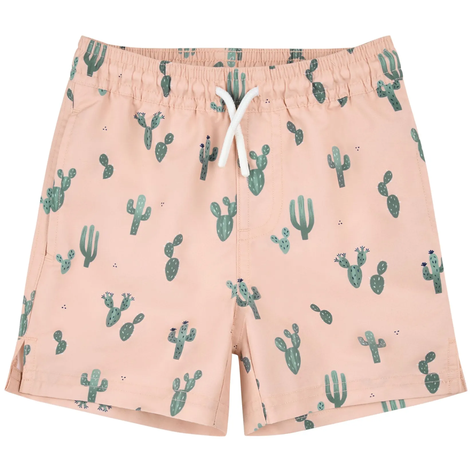 These totally on-trend swim trunks feature a Cacti print on a calming blush pink backdrop. Mix and match with one of our textured rash guards for delicate skin or for chilly days at the pool. With an elasticated, drawstring waistband, the swim trunks have a comfortable fit that can withstand all their jumping, splashing and playing. Made from easy breezy, quick-drying material and with built-in UPF50+ sun protection, there’s one less thing to worry about when heading to the beach.Â
