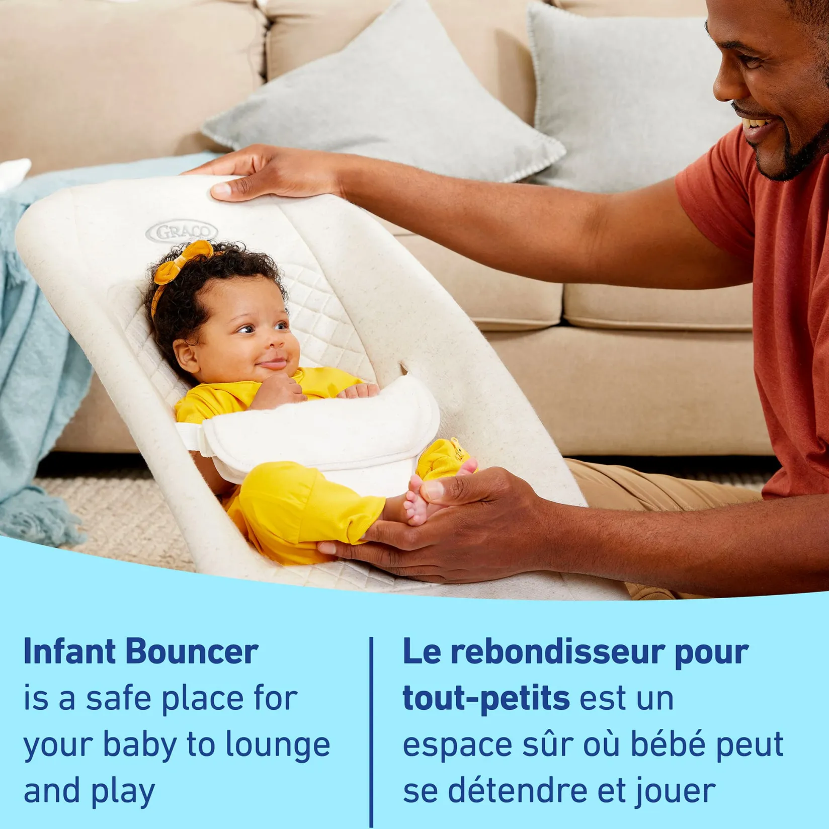Innovative infant bouncer is the only one of its kind to transition through 4 stages for more ways to sit and play