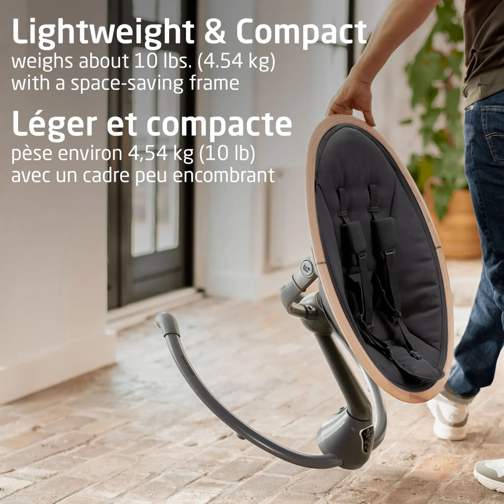Its 360⁰ rotation helps you maintain eye contact with your baby – because we know you can never take your eyes off of them. From the living room to the home office and back, you can easily take Cassia with you. Not only does it weigh about 10 pounds – less than the family cat – it also has a space-saving frame. And a stylish one at that.