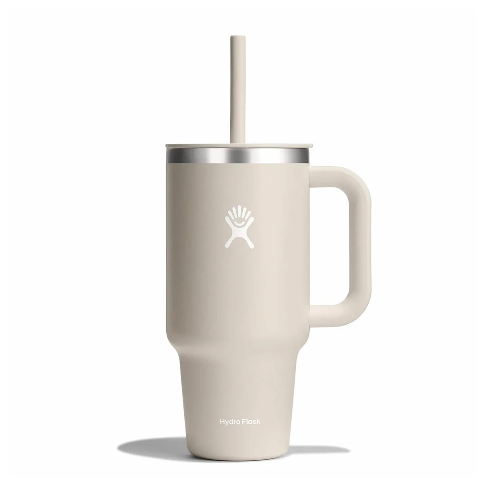 The new 32oz Hydro Flask Travel Tumbler in subtle Oat is here to hydrate more and refill less. A very comfortable, extremely durable handle takes it to the next level, and the large size can go anywhere, even fitting most cupholders. TempShield® double-wall insulation ensures cold stays cold, and the flexible straw is easy to sip any which way.
