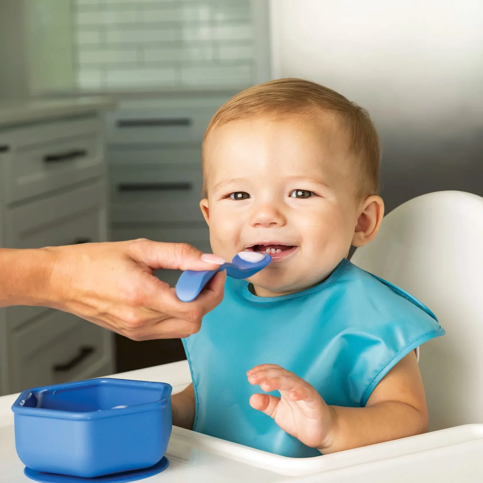Tiny Twinkle’s Silicone Baby Spoons are the perfect feeding tool for parents to feed infants first purees. Made from 100% food grade silicone, they are durable yet flexible and soft on baby’s gums. Specifically designed with a long ergonomic handle to allow the spoons to reach to the bottom of jars. Shallow spoon bowls make perfect portions for feeding baby. Spoons are dishwasher and freezer safe. For use with ages 4 – 9 months, not intended for self feeding.