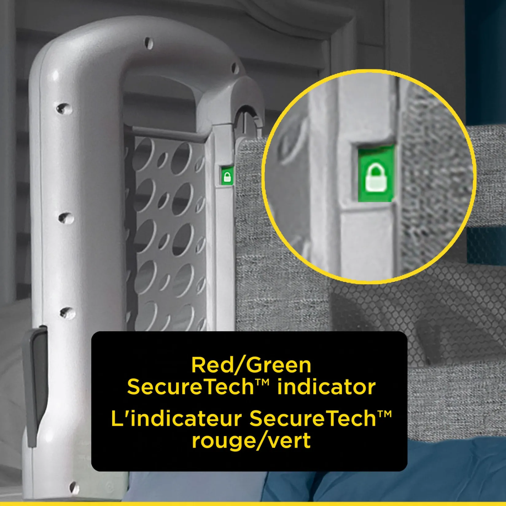 You can adjust the bed rail quickly, without additional tools. Once installed, you can instantly confirm the SecureTech Indicator that everything is locked in the right position and your little one is ready to drift safely to dreamland.Â
