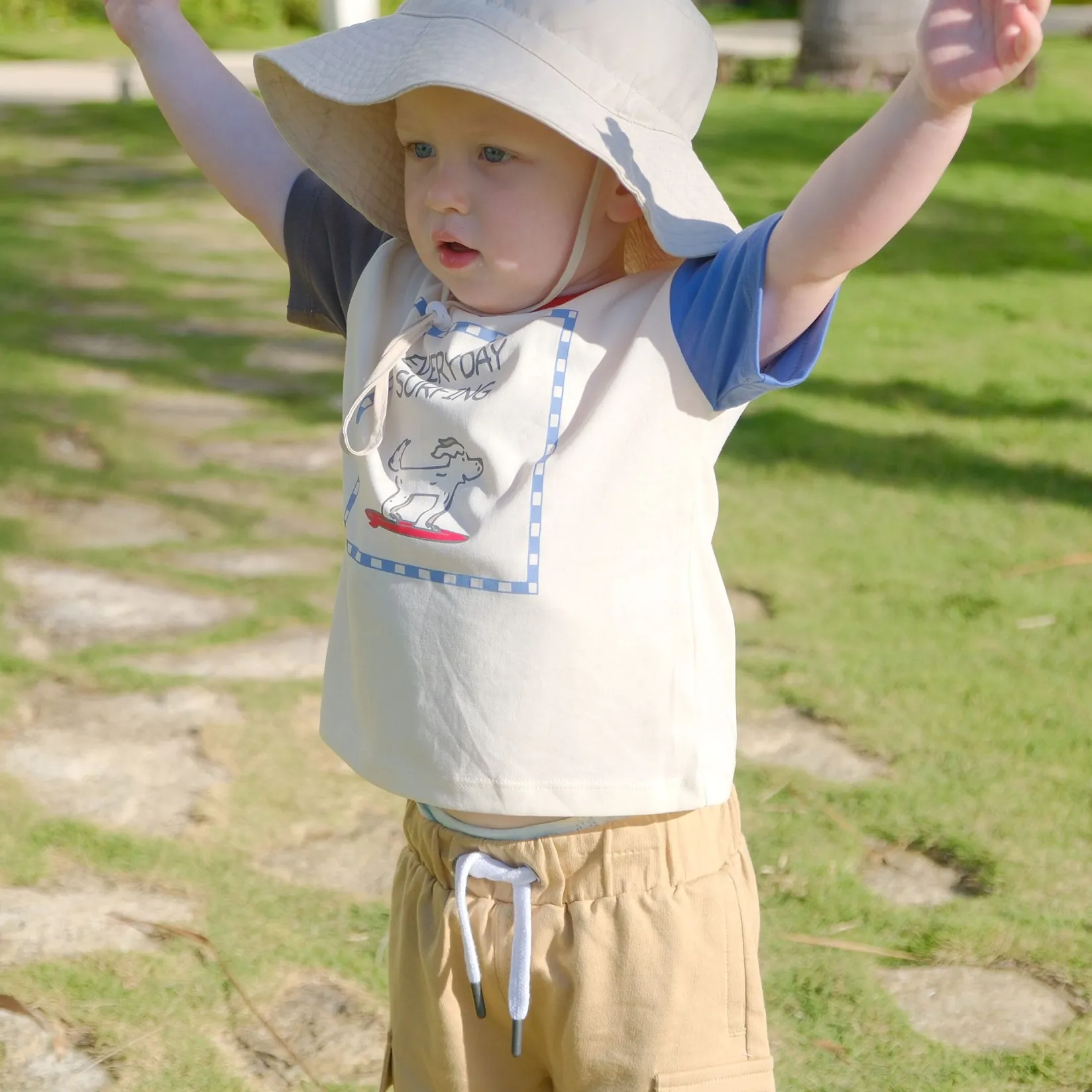 Tops>Chat Botte Surf Dog T-shirt 2-10 Ivory