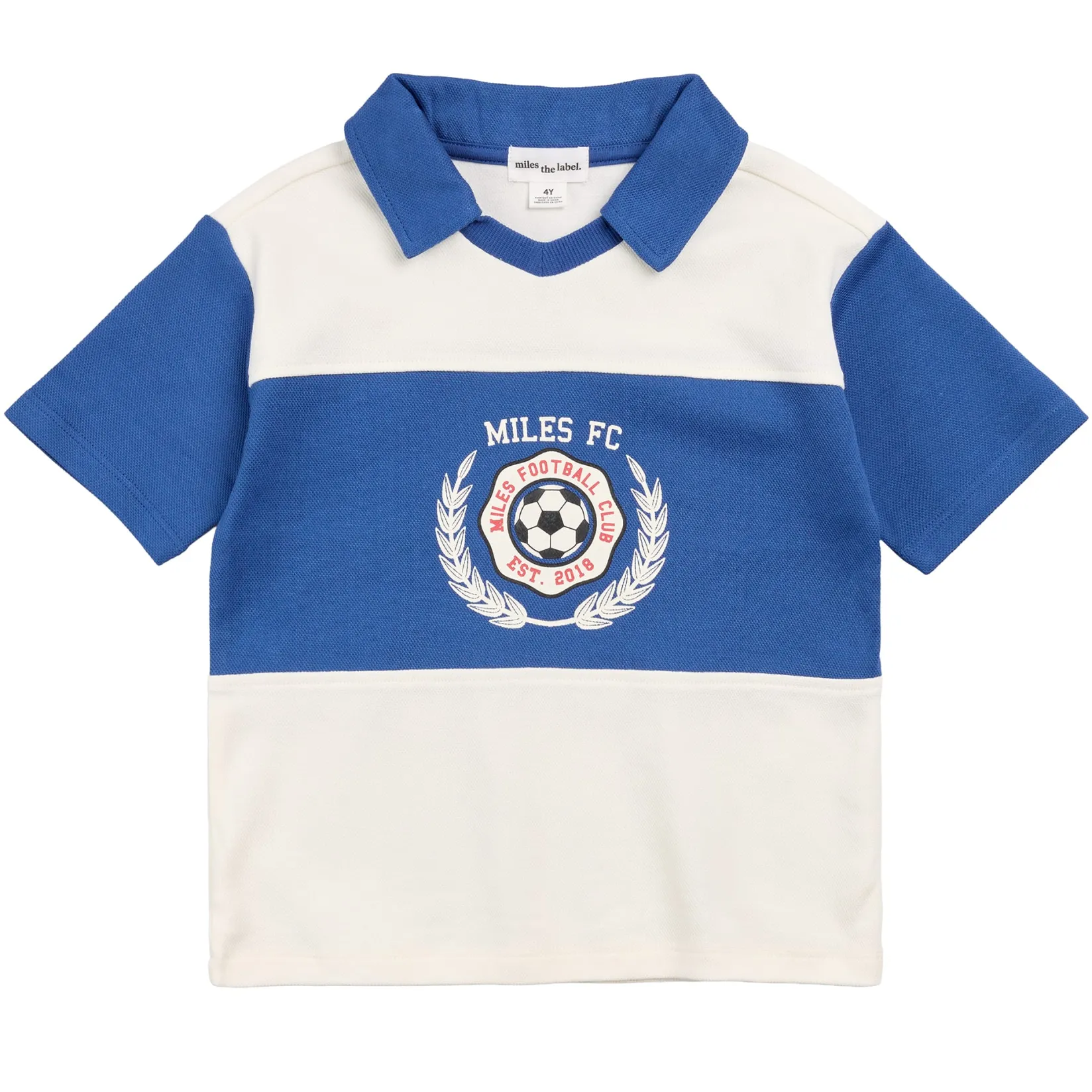 This soft, double knit mesh top features our Miles FC logo and is perfect for little sportsmen in the making. Whether he’s watching the game with dad, or practising in the garden, this block color sports top keeps him comfortable and cool. The loose collar provides a laid-back, casual style that’s perfect for weekends at home. Pair with our Miles Basics shorts or scuba joggers from the same range.