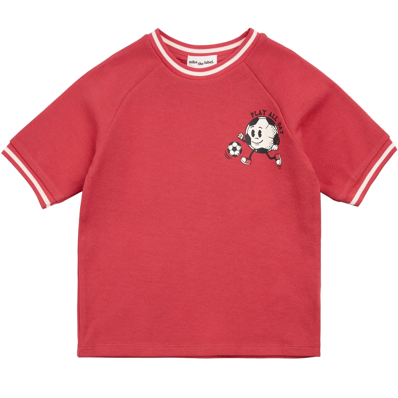 This bold red sports jersey is perfect for making him feel part of the squad when watching the big game. Featuring our own soccer mascot, the top is a playful piece to add to his weekend wardrobe. There’s coordinating shorts in the same range, giving him the chance look and feel like the best player in the town.Â