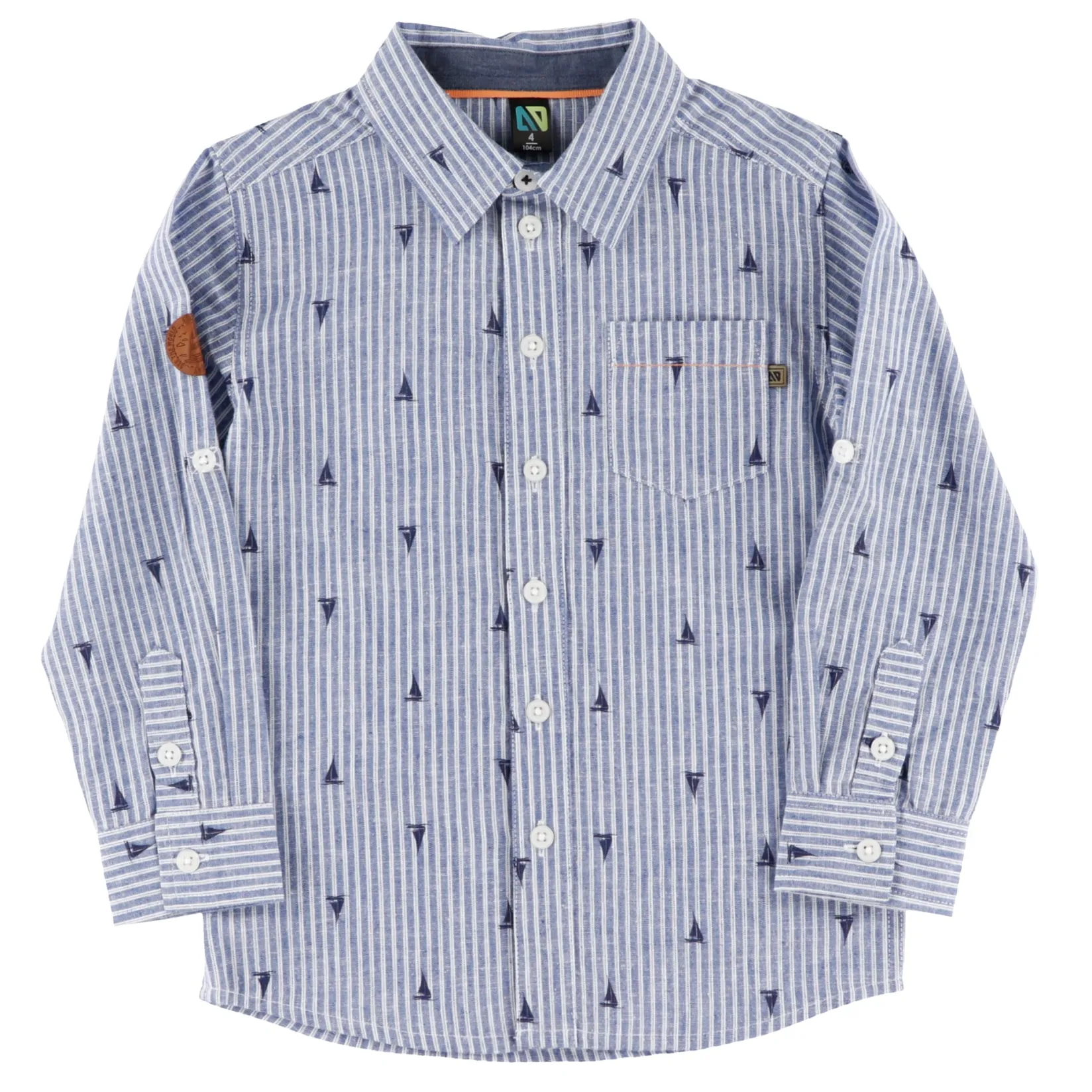 -Printed striped poplin and chambray shirt