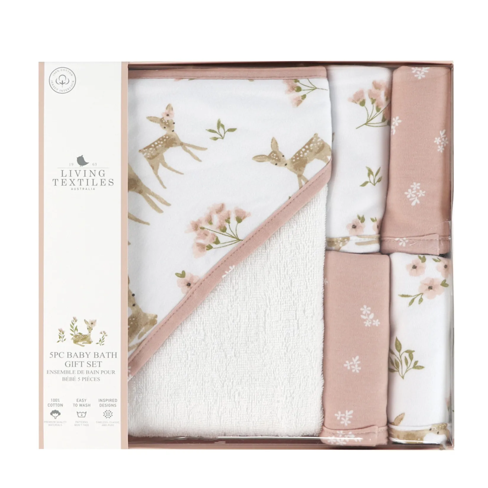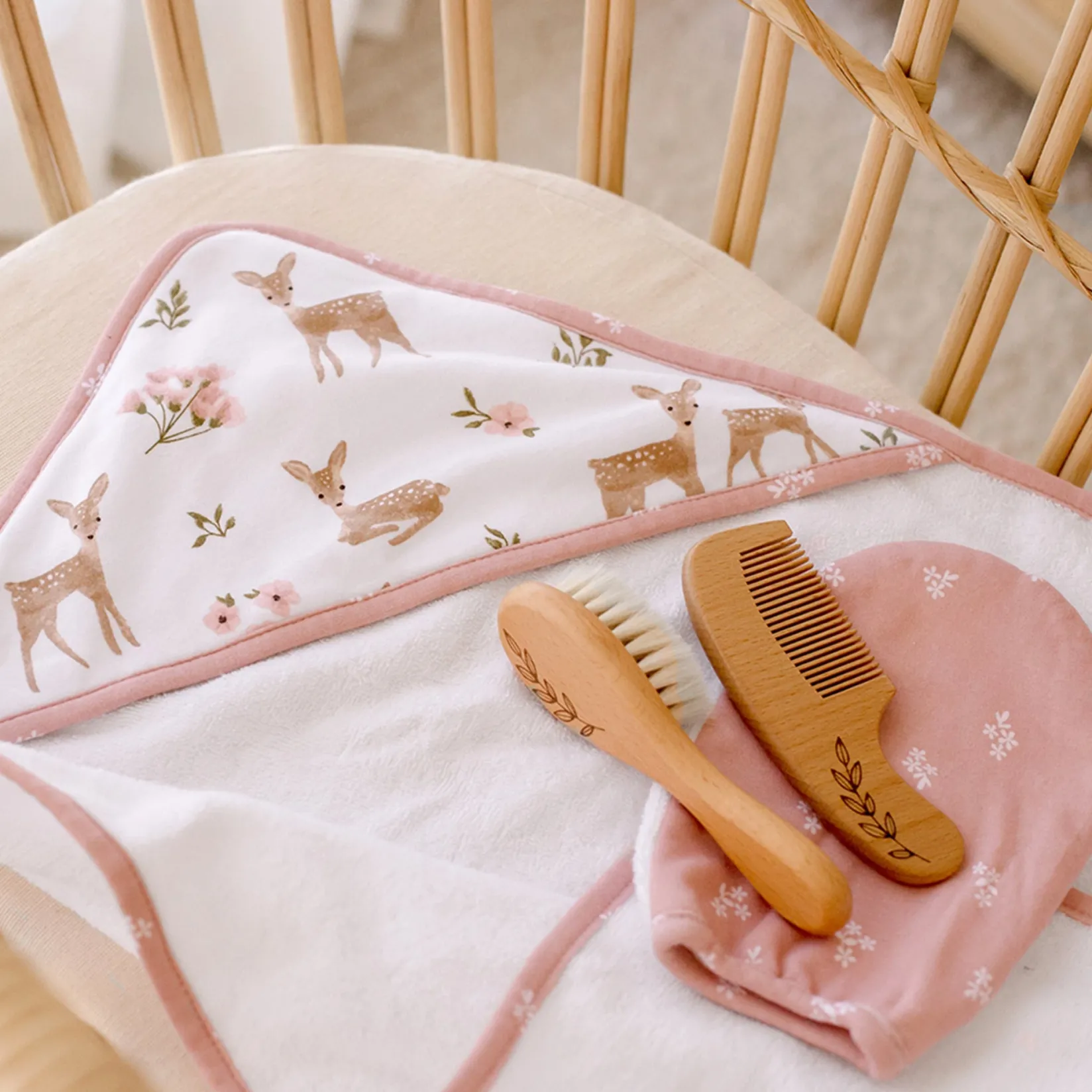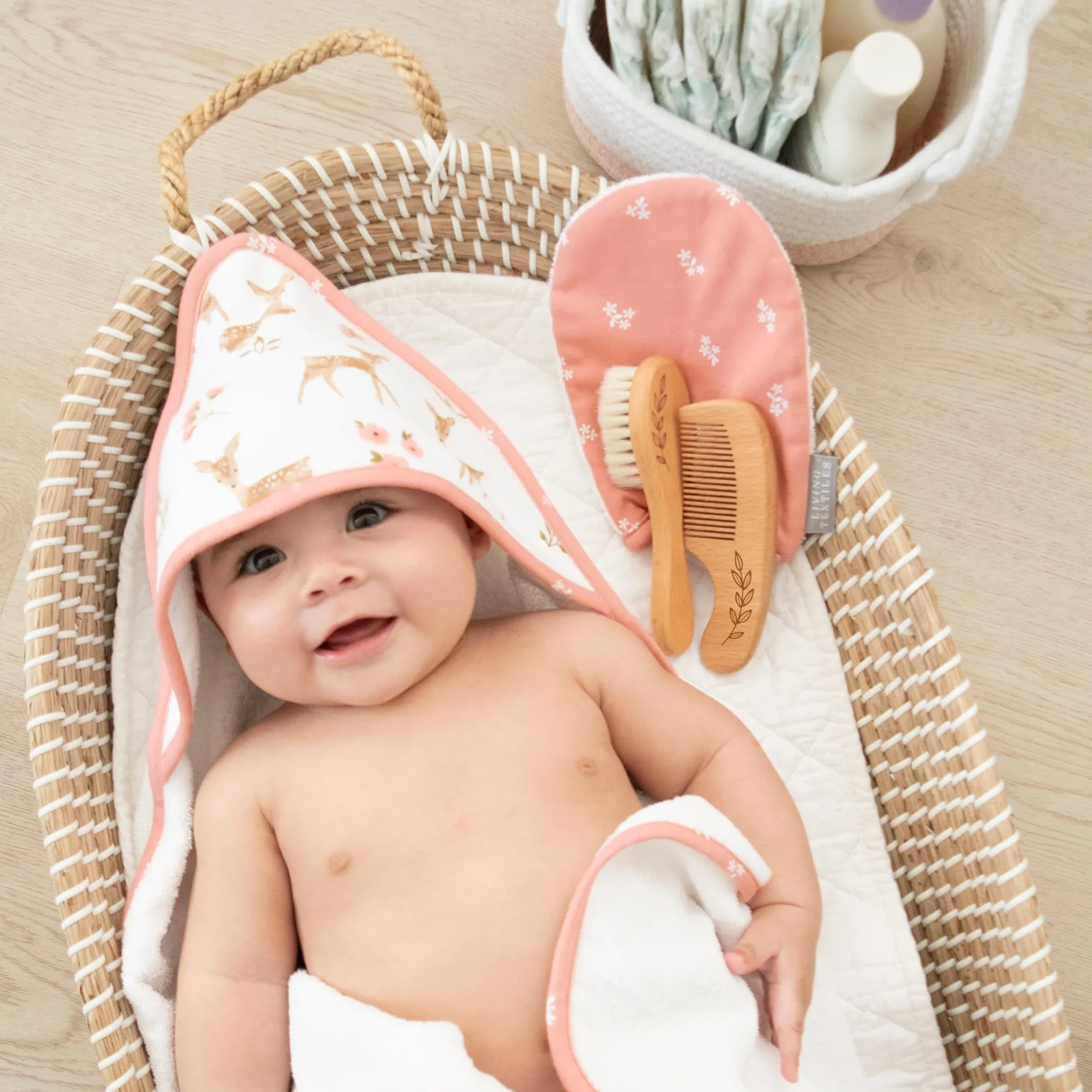Light as a feather and gentle against baby’s skin, This 100% cotton baby bath set is crafted from soft and absorbent terry towelling and features a sweet cotton jersey design. Perfect for after bath snuggles.Â