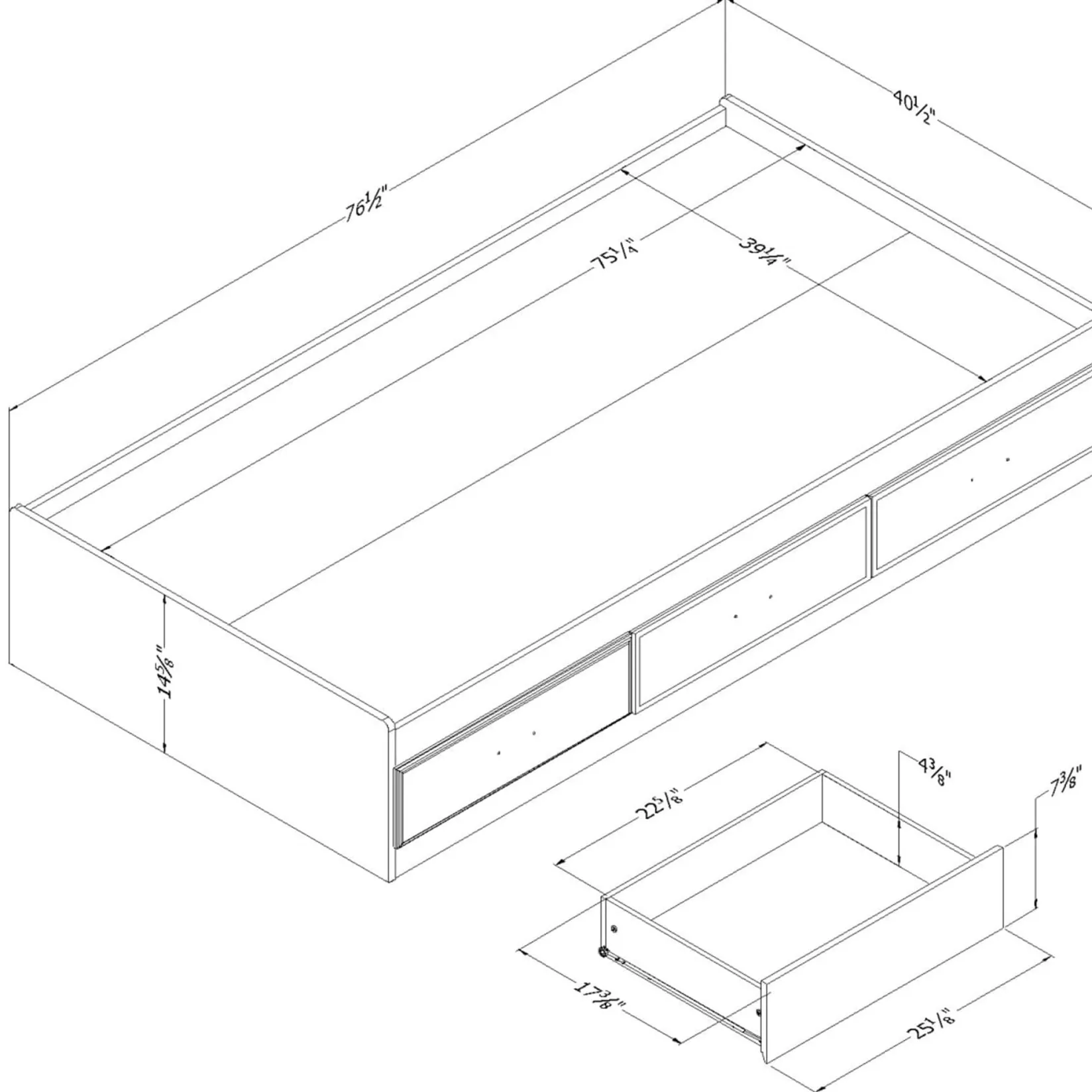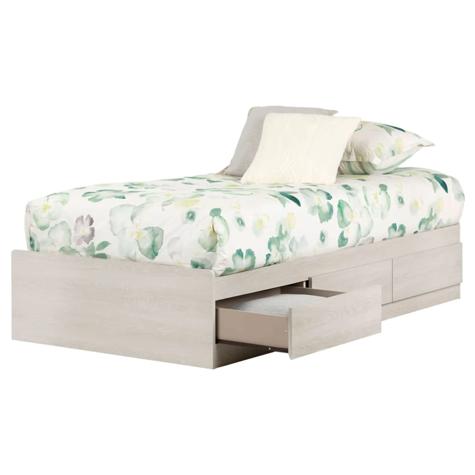 Twin, Full & Queen Beds>South Shore Fynn Twin Mates Bed with 3 Drawers – Winter Oak
