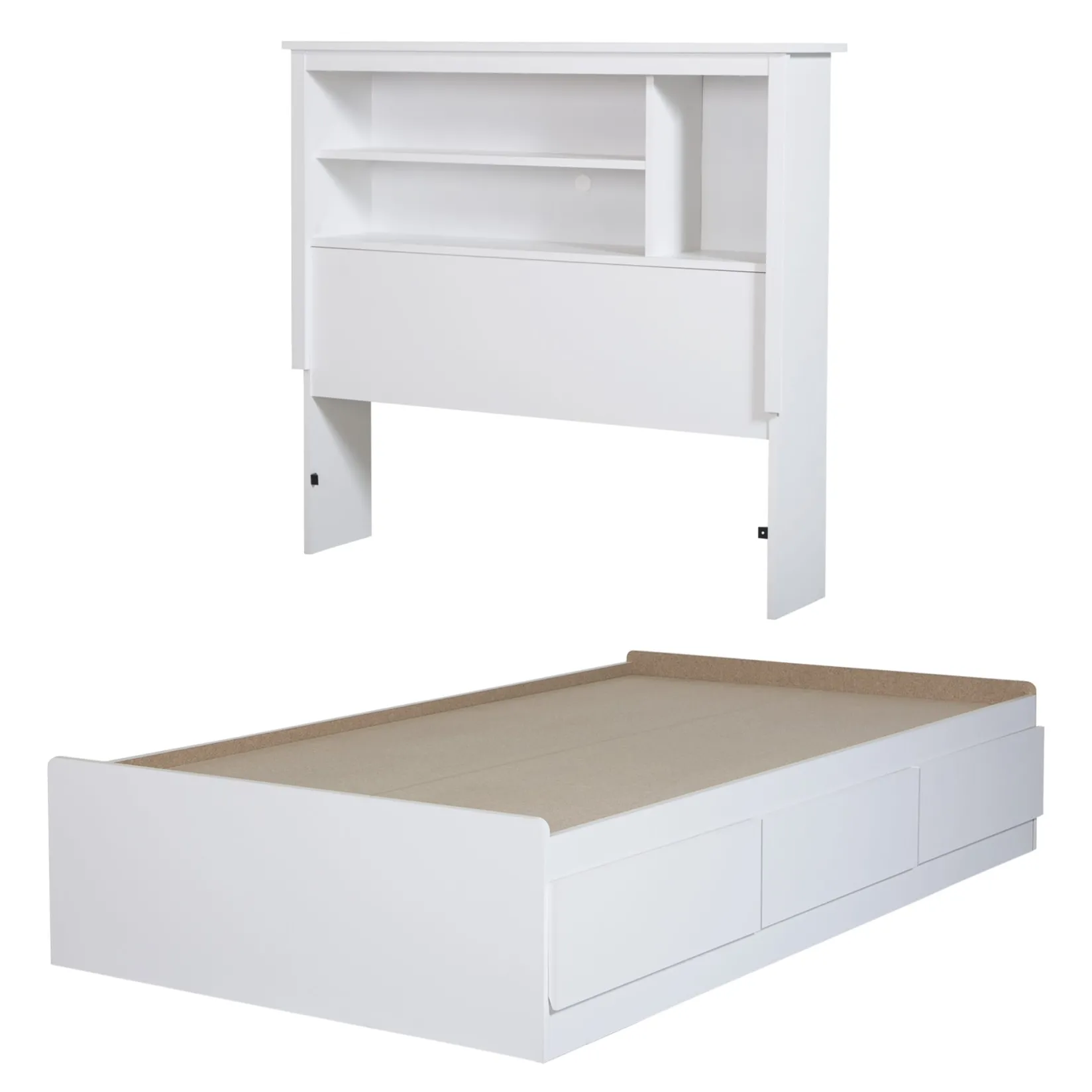 Twin, Full & Queen Beds>South Shore Mates Bed With Bookcase Headboard Set – Vito Pure White