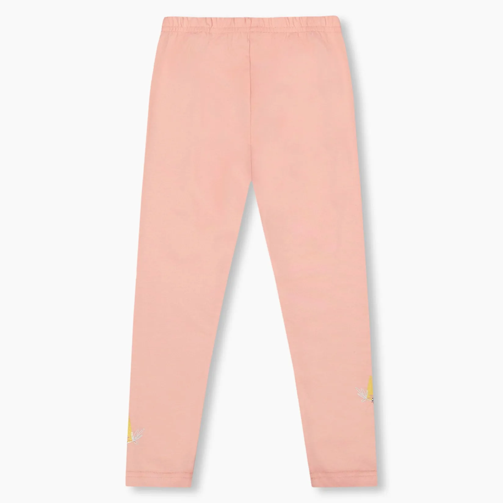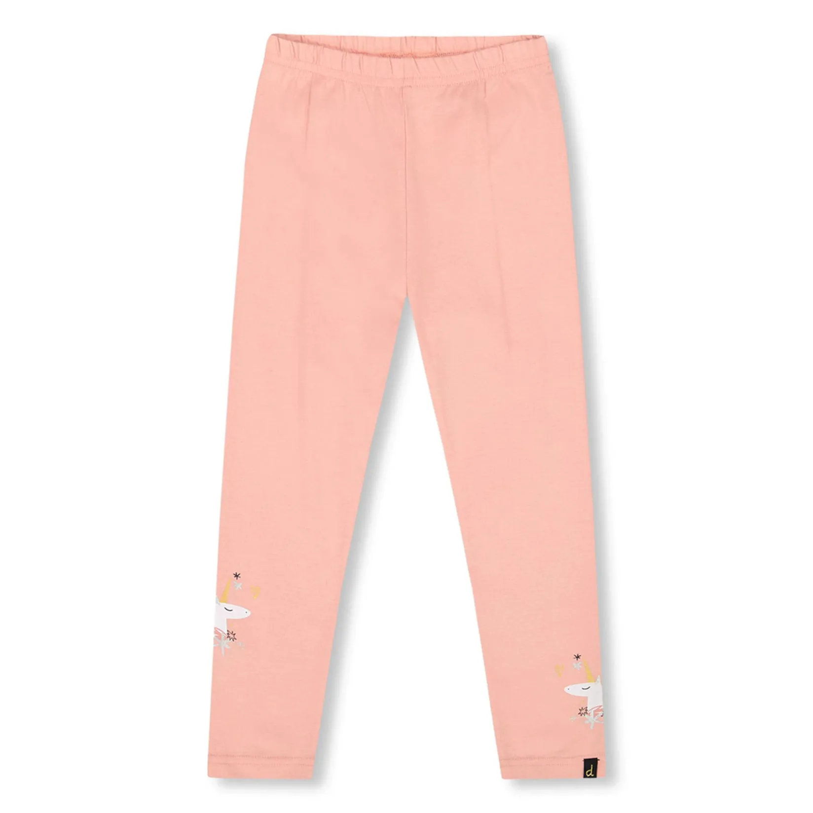 The Organic Cotton Leggings in Dusty Pink With Unicorn Print add a playful touch to everyday outfits. These stretchy jersey bottoms are crafted from a soft blend of organic cotton and elastane, featuring a comfy elastic waistband and whimsical glittery unicorn graphics near the ankles. Perfect for pairing with tunics or tees from the “Unicorns And Hearts” collection for magical playtime style.