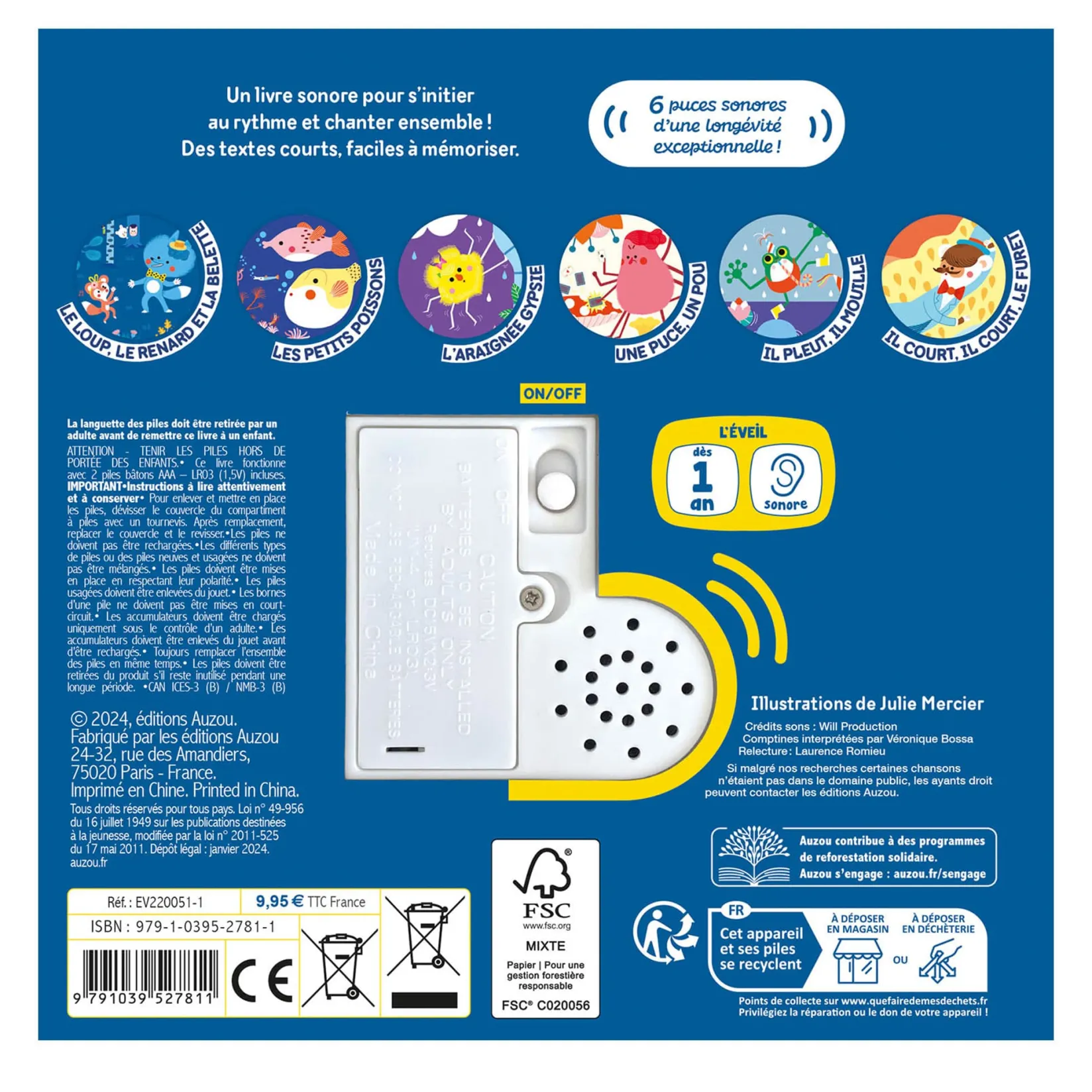 At Auzou, all children have the right to develop their imagination! The Auzou publishing house is driven by the desire to design new projects that are always more daring and innovative, with no limit other than to create 100% youth content. From birth to adolescence, its driving force remains to contribute to the development of children and teenagers from here and elsewhere, by working hand in hand with passionate authors, illustrators, and game designers. The level of requirement must always be higher, Auzou products are subjected to numerous safety tests, work methods are audited, and optimization efforts are continuous. Aware of the impact on the planet, it works to reduce its carbon footprint through several reforestation programs, and each work, game, toy, book, is primarily made with certified suppliers. At Auzou, all children have the right to develop their imagination!