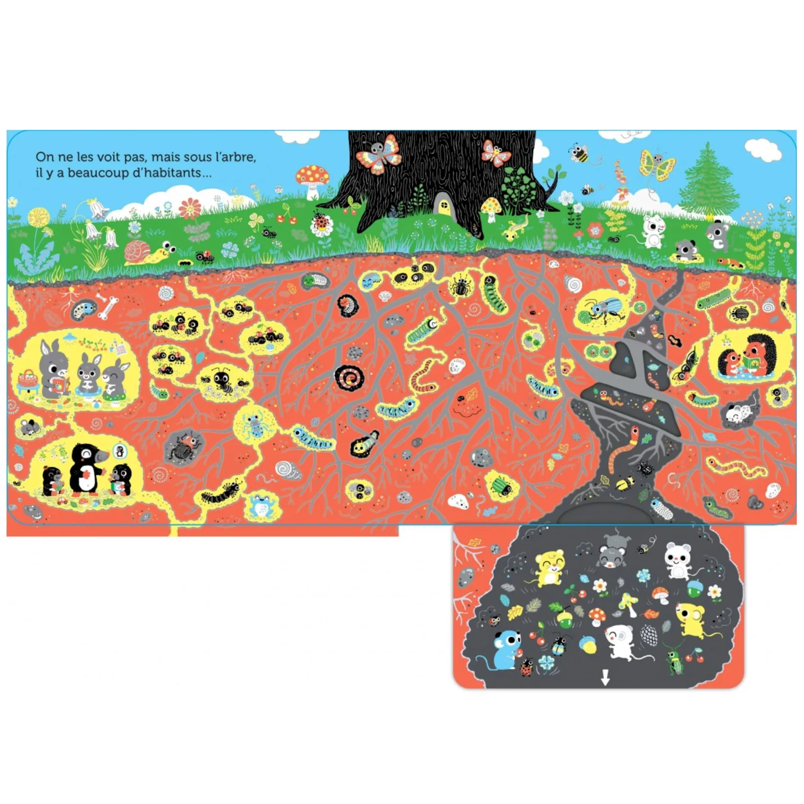 Depuis les insectes sous ses racines, en passant par les lapins qui jouent à son pied, le hibou dans son tronc, jusqu’aux oiseaux dans ses branches…