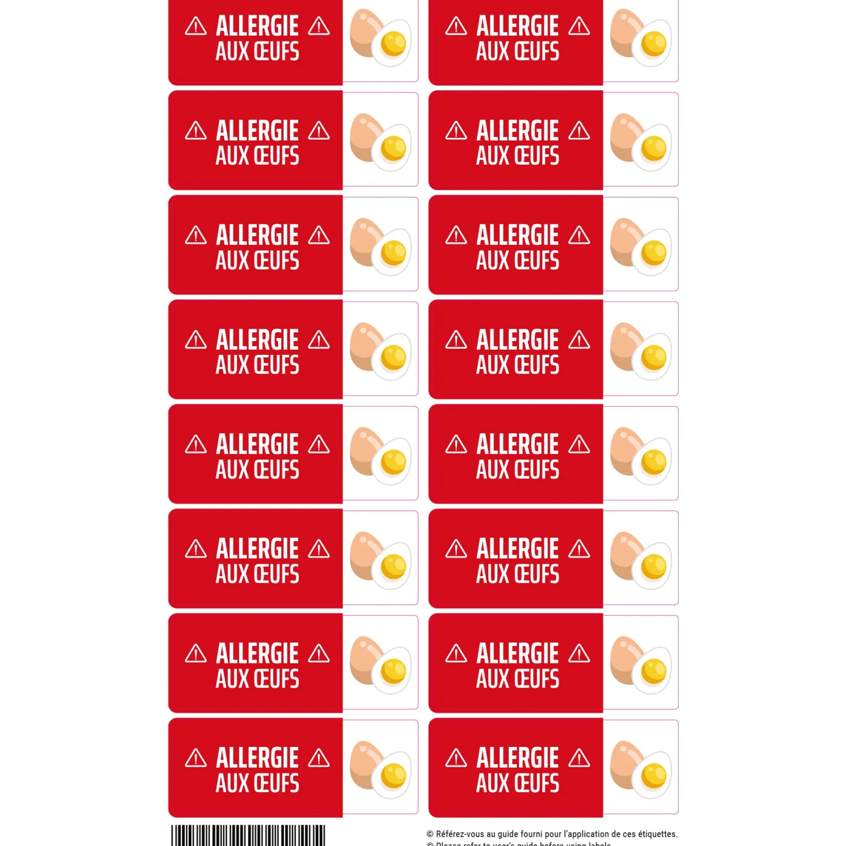 The Allergy Label Set contains 16 labels of the same size (2.6″ x 1″ / 6.6 x 2.6 cm) to identify various objects, from a container to a large backpack. Adhesive labels do not require ironing: simply peel off the stickers, apply them to the items to be identified, and wait 24 hours before exposing them to water, heat, or cold.