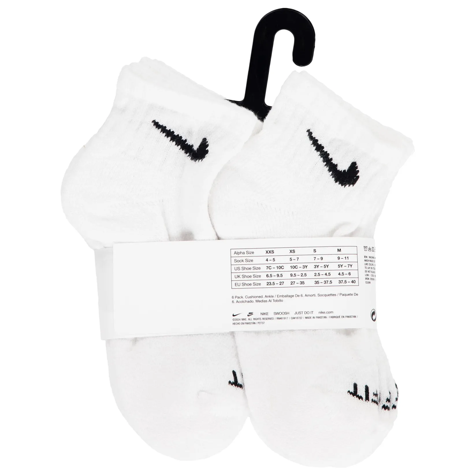 Caractéristiques :Cotton/poly blend in a flat knit construction. Jacquard Swoosh logo detailing on the ribbed cuffs. Moisture-wicking Dri-FIT technology. Breathable mesh upper. Ribbed arch support band. Half cushioned toe/heel/bottom. Includes 6 pairs of crew socks.