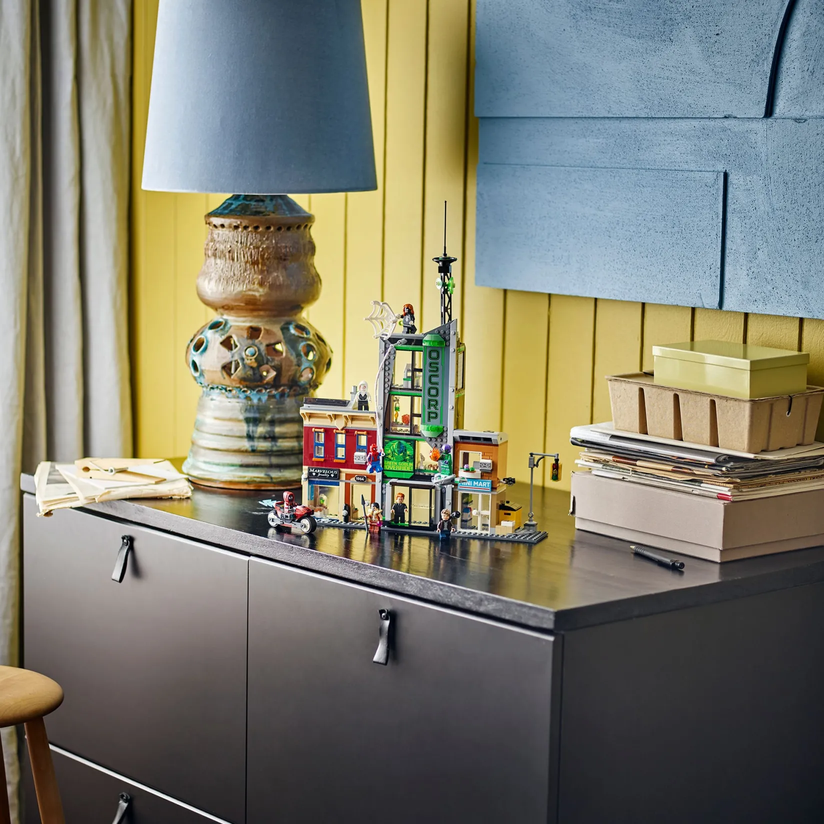 – Buildable LEGO® ǀ Marvel street scene set with 8 minifigures