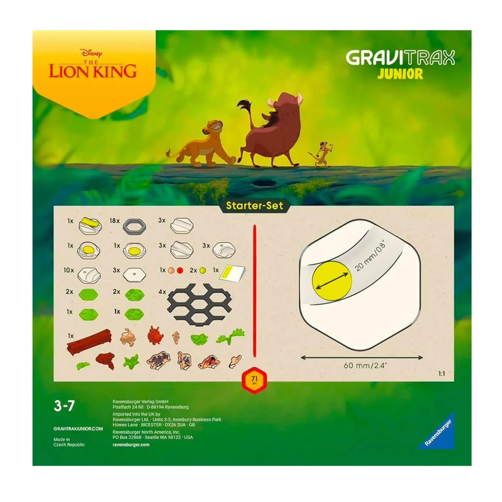 GraviTrax Junior is an interactive marble run system designed for children aged 3 and up. The GraviTrax Junior Disney Lion King Bundle allows boys and girls to create their own unique Lion King marble runs. Featuring play figures like Simba, Pumba, and Timon, along with decorative elements such as a large tree trunk, children can build their own Lion King universe. Imaginative play encourages pretend play and stimulates creativity.