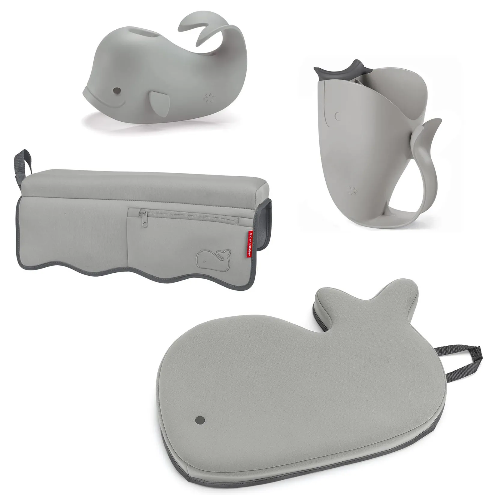 Bathing baby is a breeze with the help of our handy bathtime helper kit. Packed with four of our popular Moby bath basics in decor-friendly grey, the four-piece set includes a rinser, soft spout cover, padded elbow rest and kneeler. Now parents can be just as comfy as little ones during tub time. Makes a welcome gift for first-time parents, too!