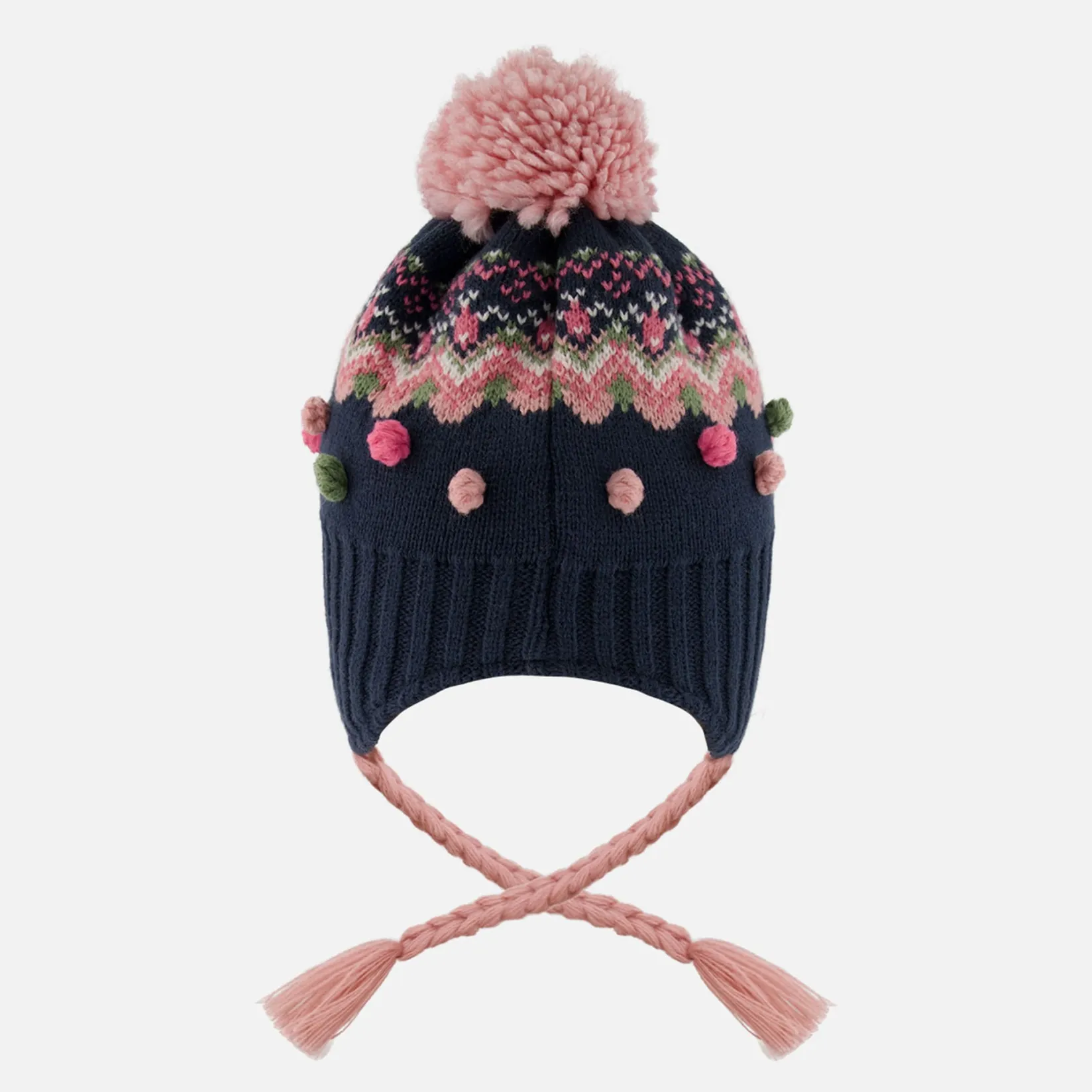 A protective layer to combat wintry weather, this Peruvian knit cap offers comfort and coverage in a soft, stretch knit with extended panels that cover the ears. Tassel ties and colorful pompoms add to its charming exterior, while a soft polar fleece lining offers added warmth and protection.